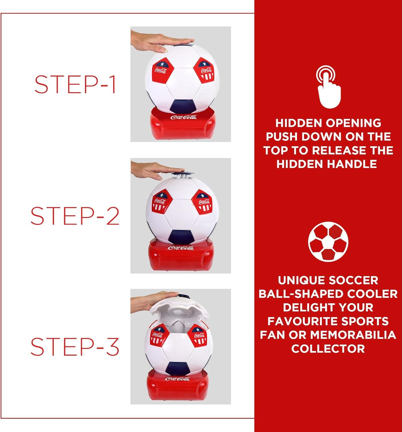 FUN & ATTRACTIVE DESIGN – this mini cooler features a Unconventional soccer ball shape with official Coca-Cola graphics, making it a ideal addition for sports fans, collectors, & Coca-Cola enthusiasts. Its eye-catching design not only adds a fun element to any space but also serves as a great conversation starter. Whether placed in your office, den, or games room, this cooler is sure to grab attention & bring a smile to anyone's face.