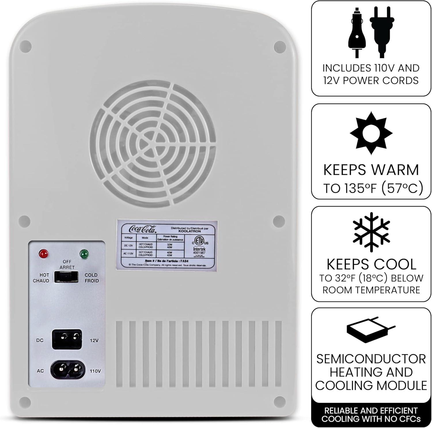 DUAL-FUNCTION TECHNOLOGY – equipped with thermoelectric technology, the fridge can both cool & warm items, making it versatile for different needs. it cools to 32°f (18°c) below the surrounding temperature or warms up to 135°f (57°c). this dual-functionality makes it perfect for keeping beverages cold or snacks warm, depending on needs. the ability to switch between cooling & warming modes adds to its versatility, making it a great addition to any home, office, or vehicle. whether needing to keep drinks chilled or food warm, this mini fridge has it covered.