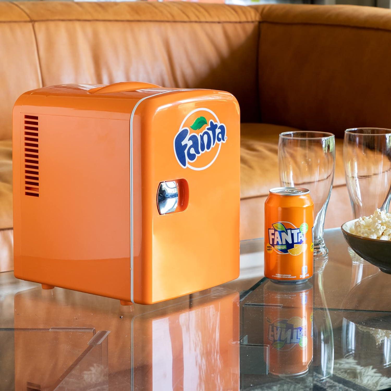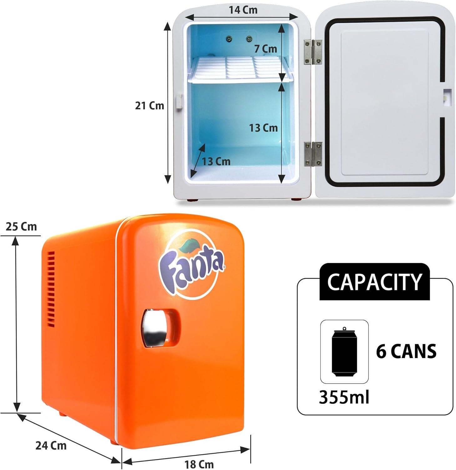 COMPACT & ELEGANT: featuring a retro silhouette with a fun logo, this mini fridge adds a nostalgic touch to any space. its small size & cute design make it a great addition to any room, from kids' rooms to home offices. it not only serves a practical purpose but also enhances the aesthetic appeal of your space, making it a elegant accessory that complements your decor.