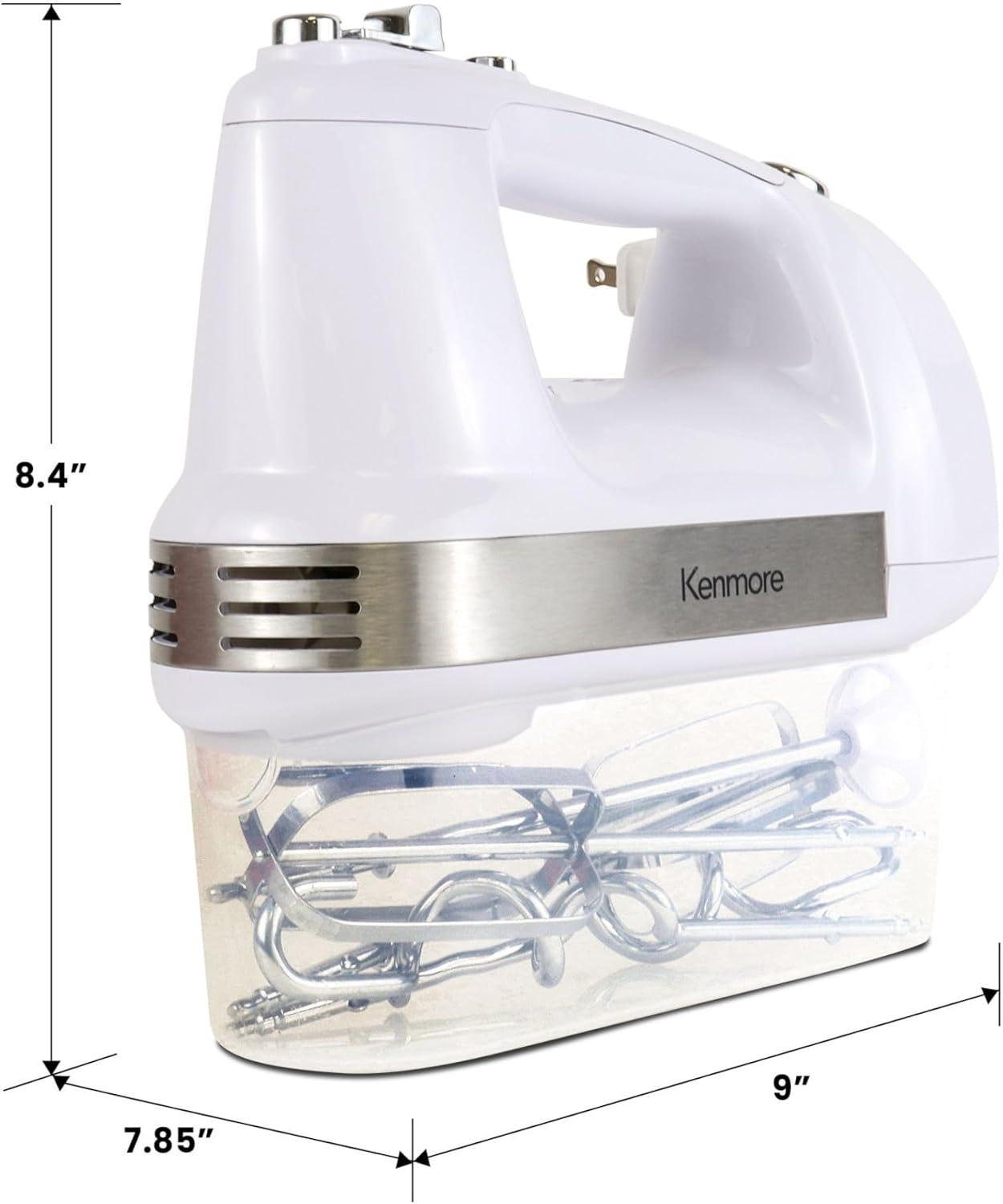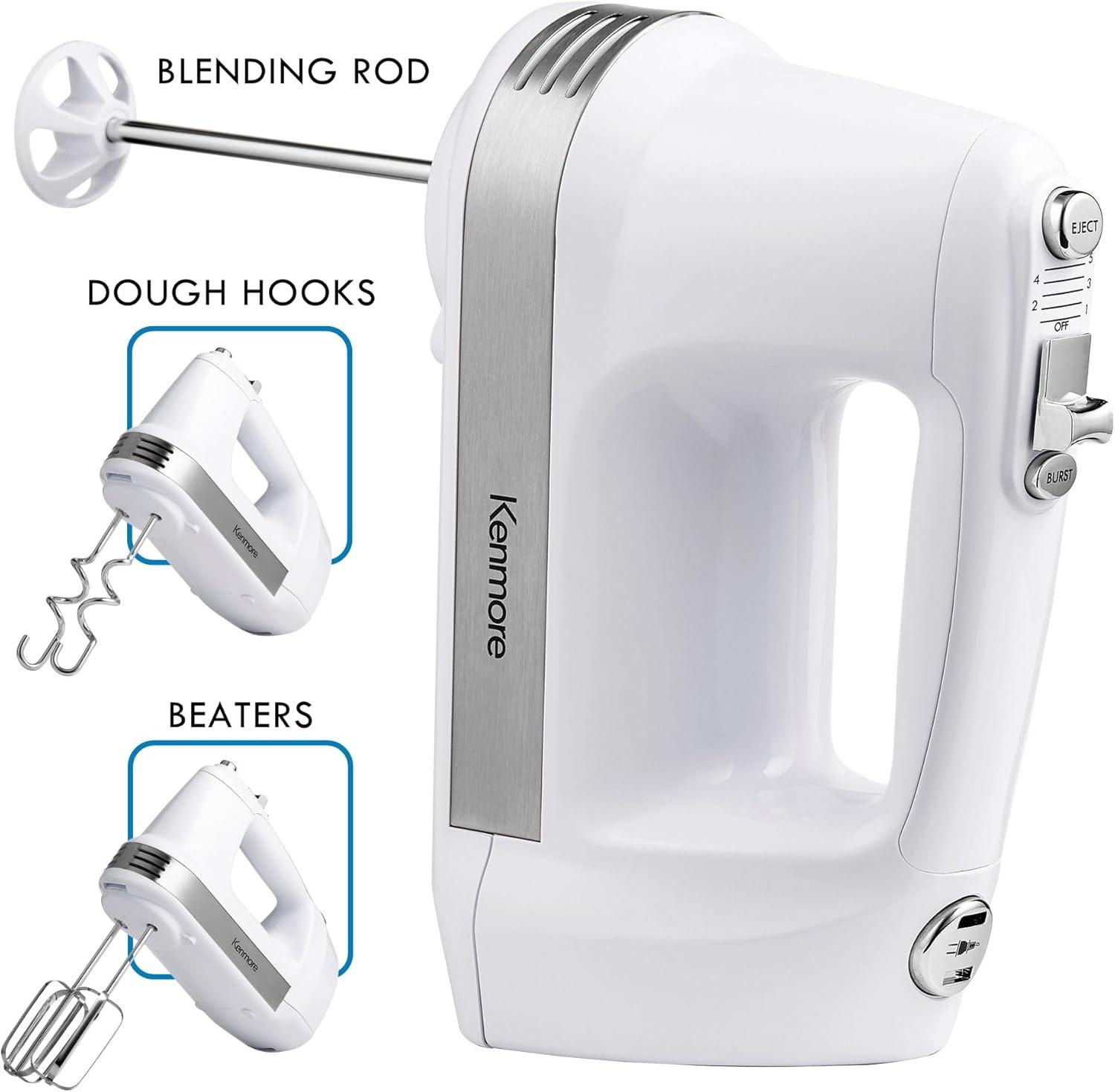With this Kenmore hand mixer mix it fast, mix it right and get the variable speeds and Comfort you need to get the job done with the Kenmore 5-Speed hand mixer. This 5-Speed hand mixer features burst control to give you some extra power when you need it. Plus, the automatic power cord retract system keeps the cord out of your way.