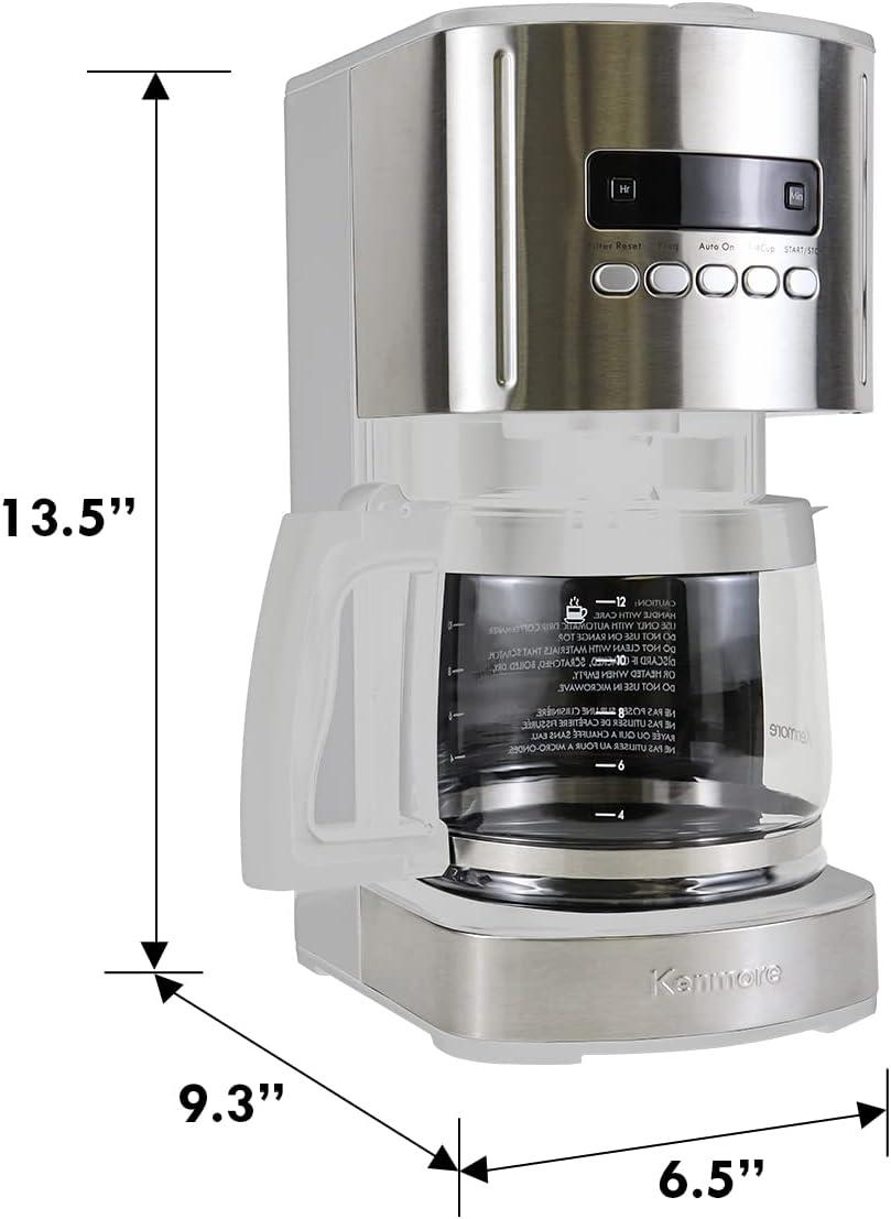 Kenmore Drip Coffee Maker – 12 Cup Programmable Cafe Machine With Glass Pot, Regular & Bold Brew, Auto Shut Off Large Water Reservoir, Reusable Filter, Kitchen Appliances For Cafeteria Barista(White)