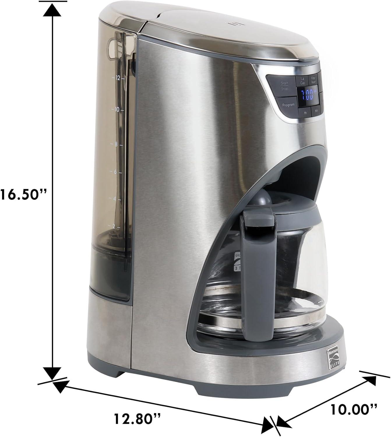 LARGE 12-CUP CAPACITY – Brew up to 1.8 liters (1.9 quarts) of coffee into the dishwasher-safe glass carafe. For smaller servings, select the 1-4 cup mode. This versatile Kenmore Coffee Maker is Impeccable for both large gatherings & personal use, ensuring you always have the right amount of coffee.