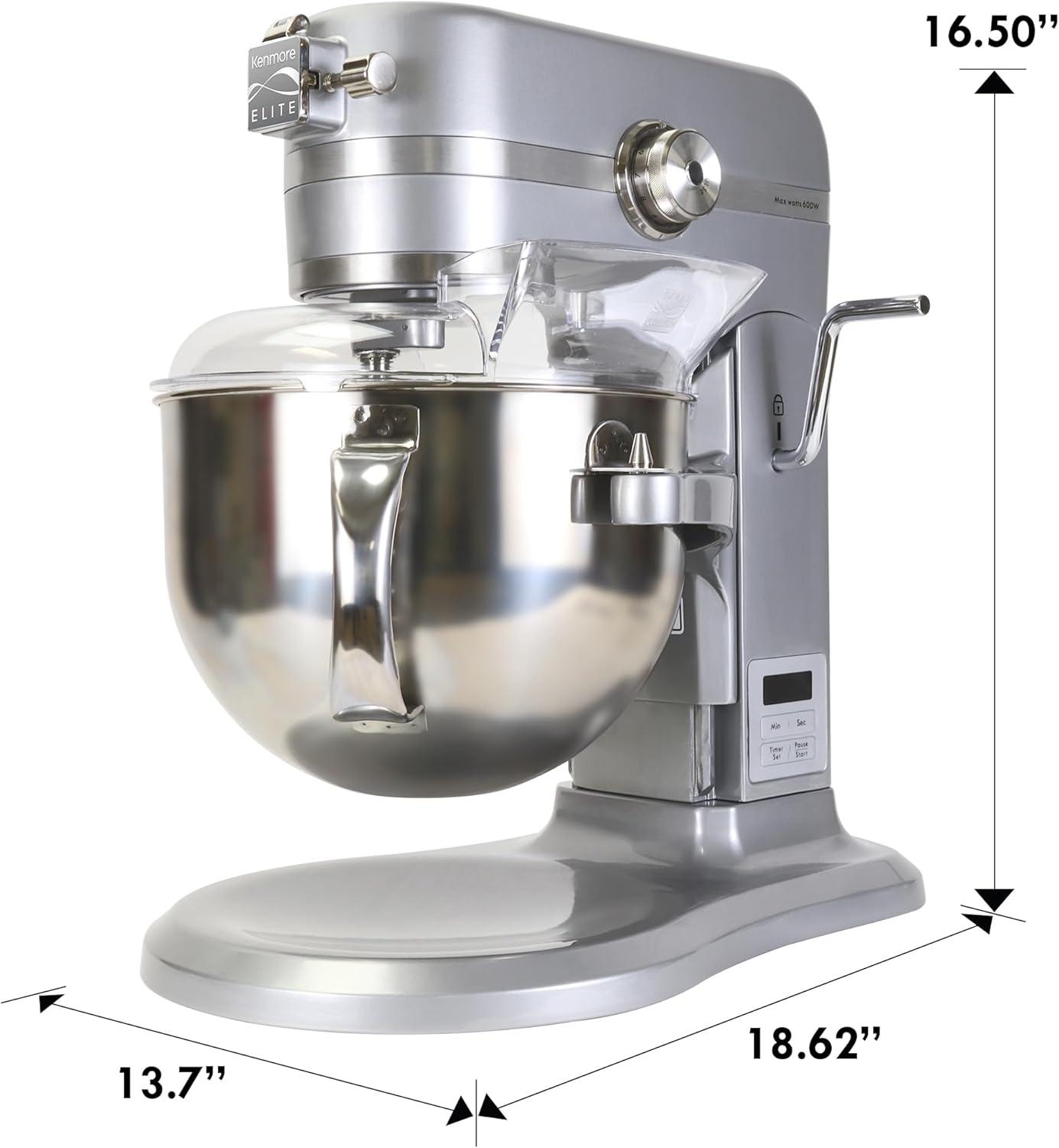 When you need powerful mixing power and a large Capacity, look to the Kenmore Elite 6 quart bowl lift-stand mixer treats, desserts, sauces and more are a cinch thanks to the 6 quart bowl lift-stand mixer's powerful 600-watt motor. The lift-stand is nice for Under-Cabinet use and storage as it doesn't tilt, and therefore doesn't need extra clearance. With 10 speeds and an easy-to-use dial, you'll mix recipes with precision. When you're hosting family or prepping for a party, the 6-Quart mixing bowl will easily accommodate those larger batches. In addition to this mixer, you receive handy, dishwasher-safe attachments such as a detachable pouring shield, flat beater, wire whip and more. The attachment hub also works with additional accessories, for all you advanced chefs. Break out the cookbook because this mixer can handle it.