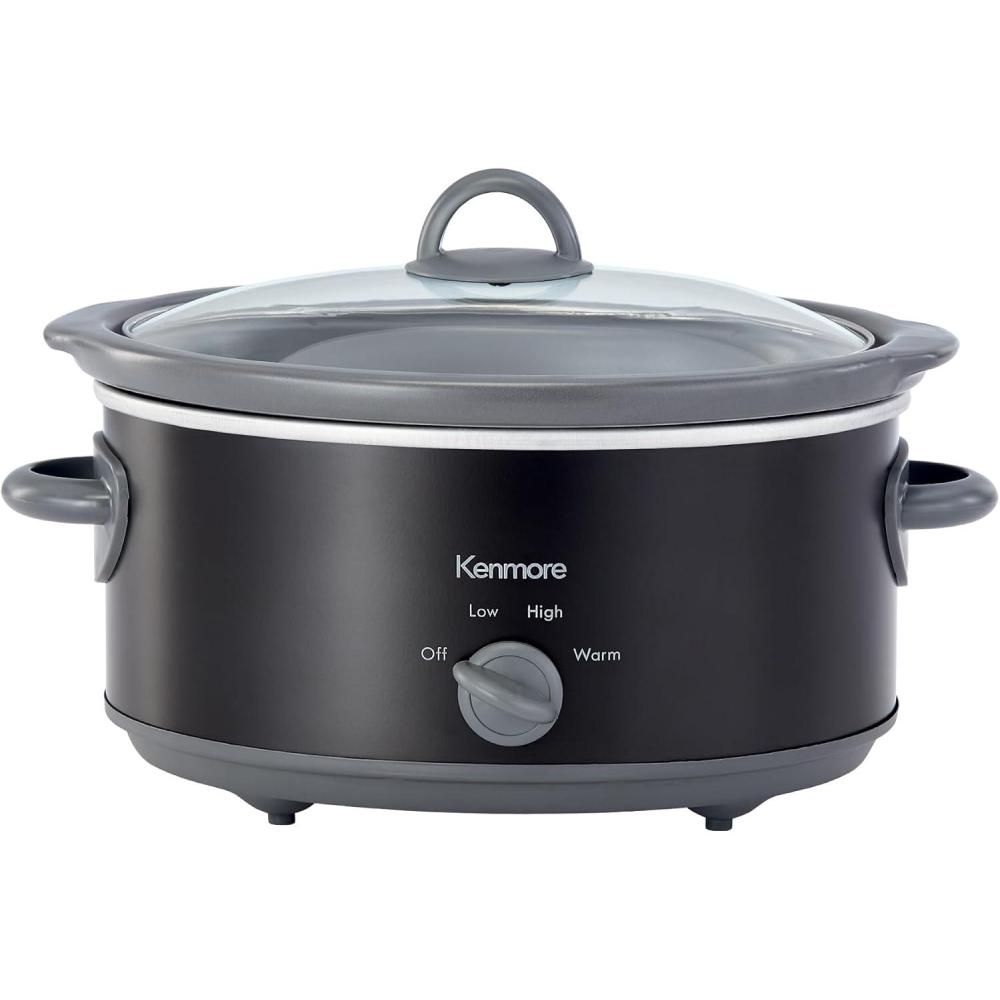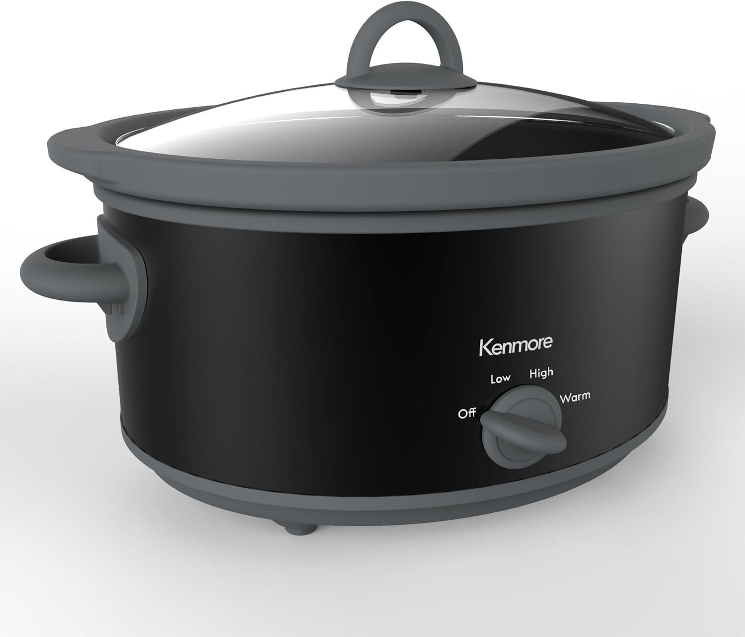 The Kenmore 5-Qt Slow-Cooker simplifies meal prep with its user-friendly design. Just add ingredients, set the temperature, and let it cook. Its 5-quart capacity fits a 5 lb chicken or 3 lb roast. The sleek exterior and dishwasher-safe parts ensure easy cleanup.