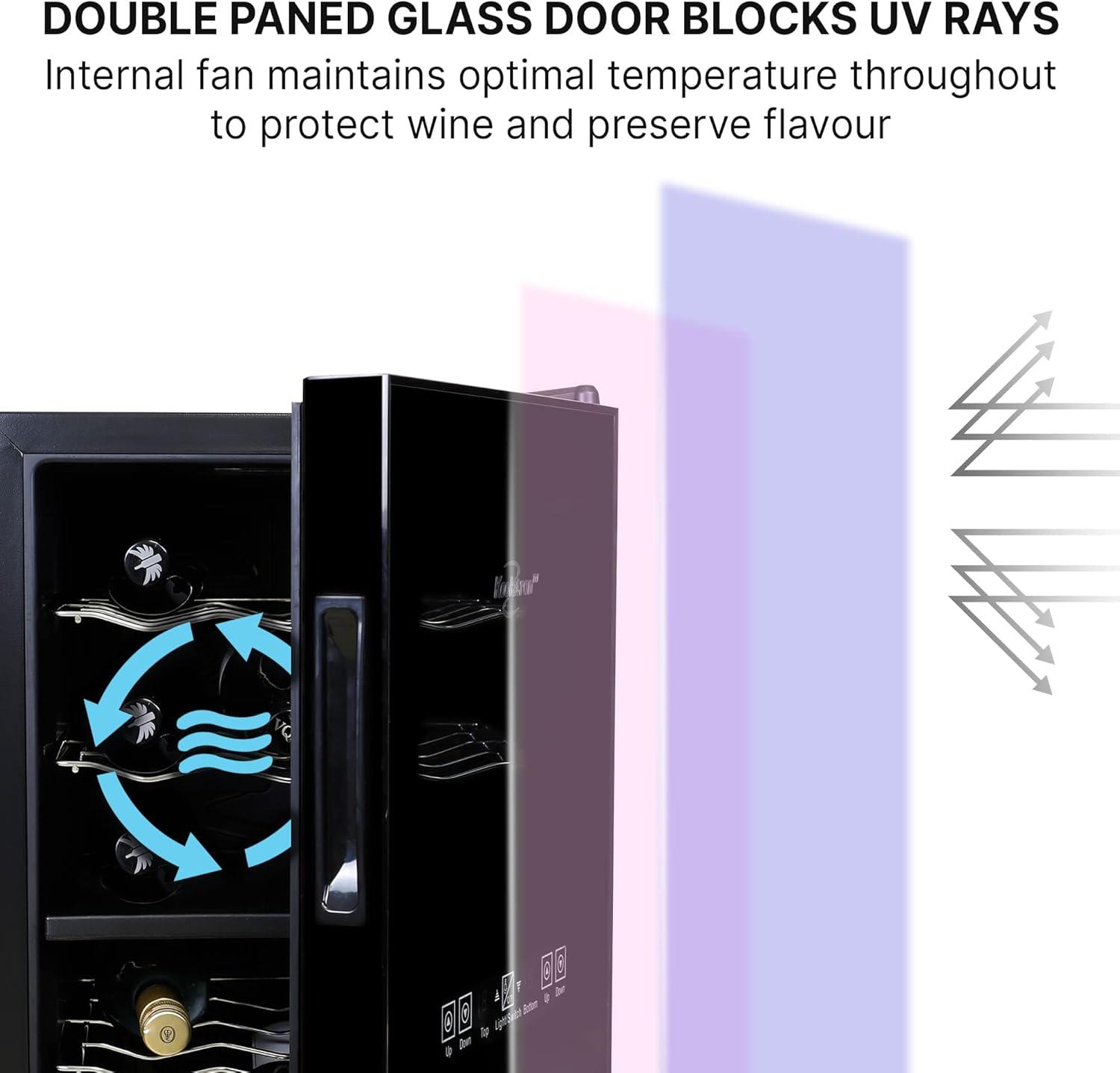 UV Protective Glass Door: Double-paned mirrored glass door protects your wine from damaging UV rays while soft interior lighting subtly highlights your wine collection