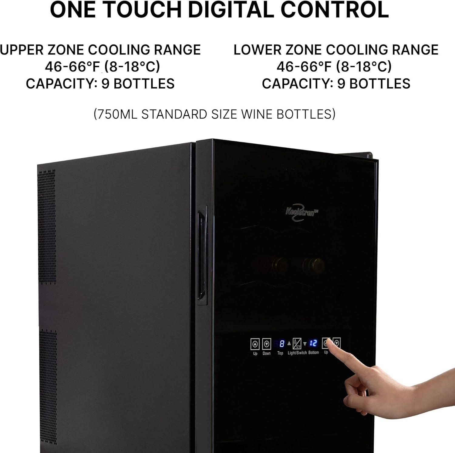 Dual Zone Cooling: Separately controlled upper and lower zones can each hold 9 standard Bordeaux bottles at their ideal storage temperature so you can get the most out of your favorite vintages