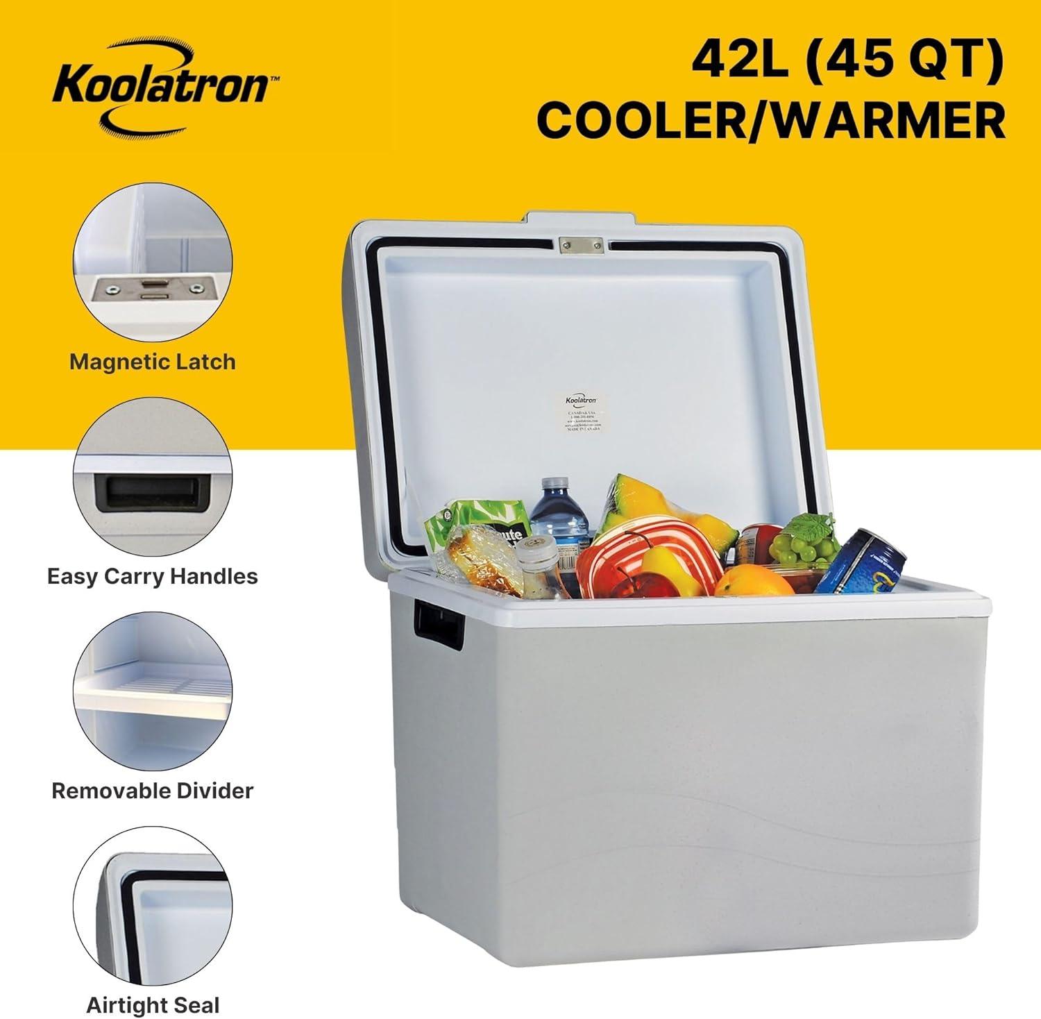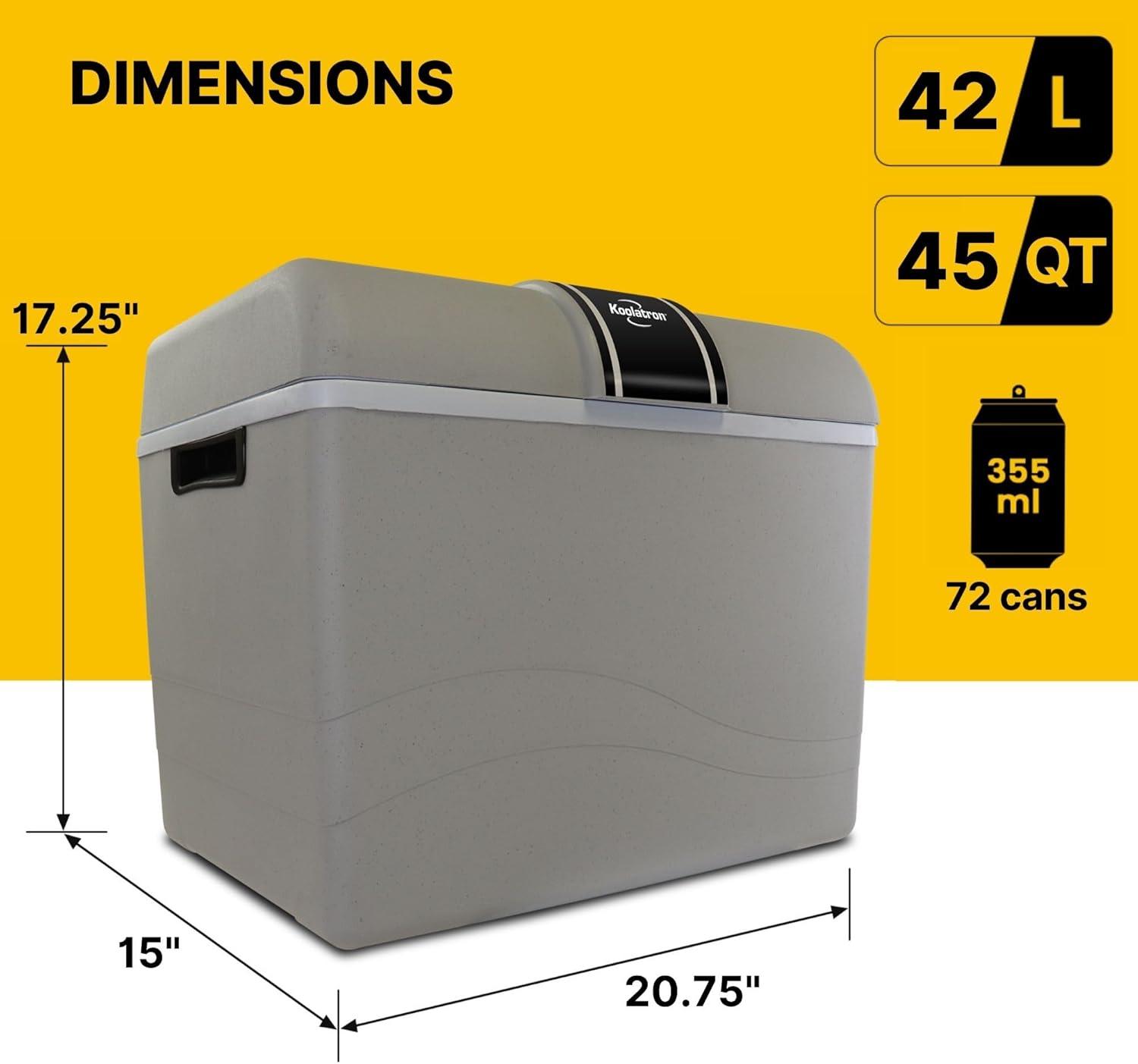 Koolatron 45 qt Portable Cooler – Electric Cooler for Car, Camping, Travel, 12 V Insulated Hard Sided Refrigerator for Vehicle, Boat, Truck, Warming & Cooling, Cools Drinks,Food for Road Trip.(45 Quart)