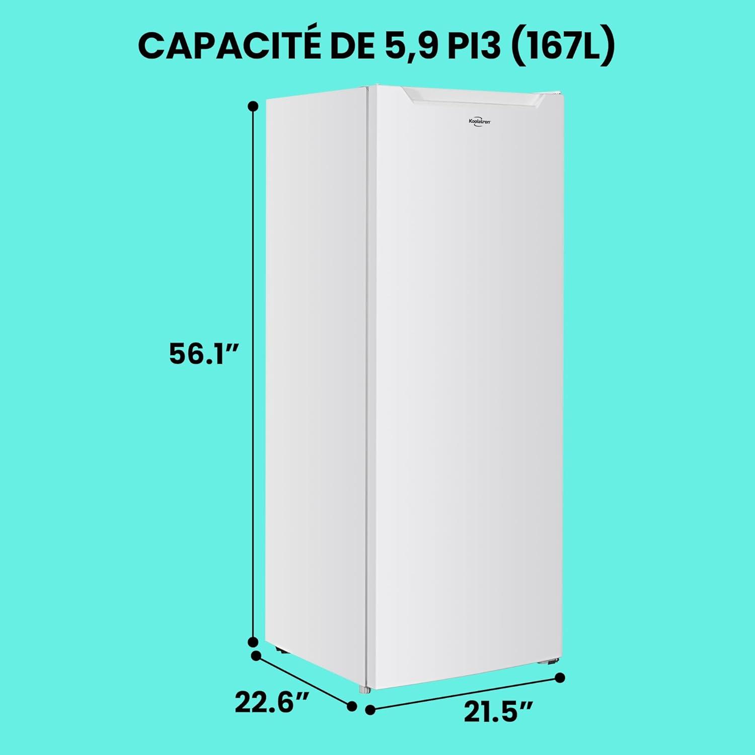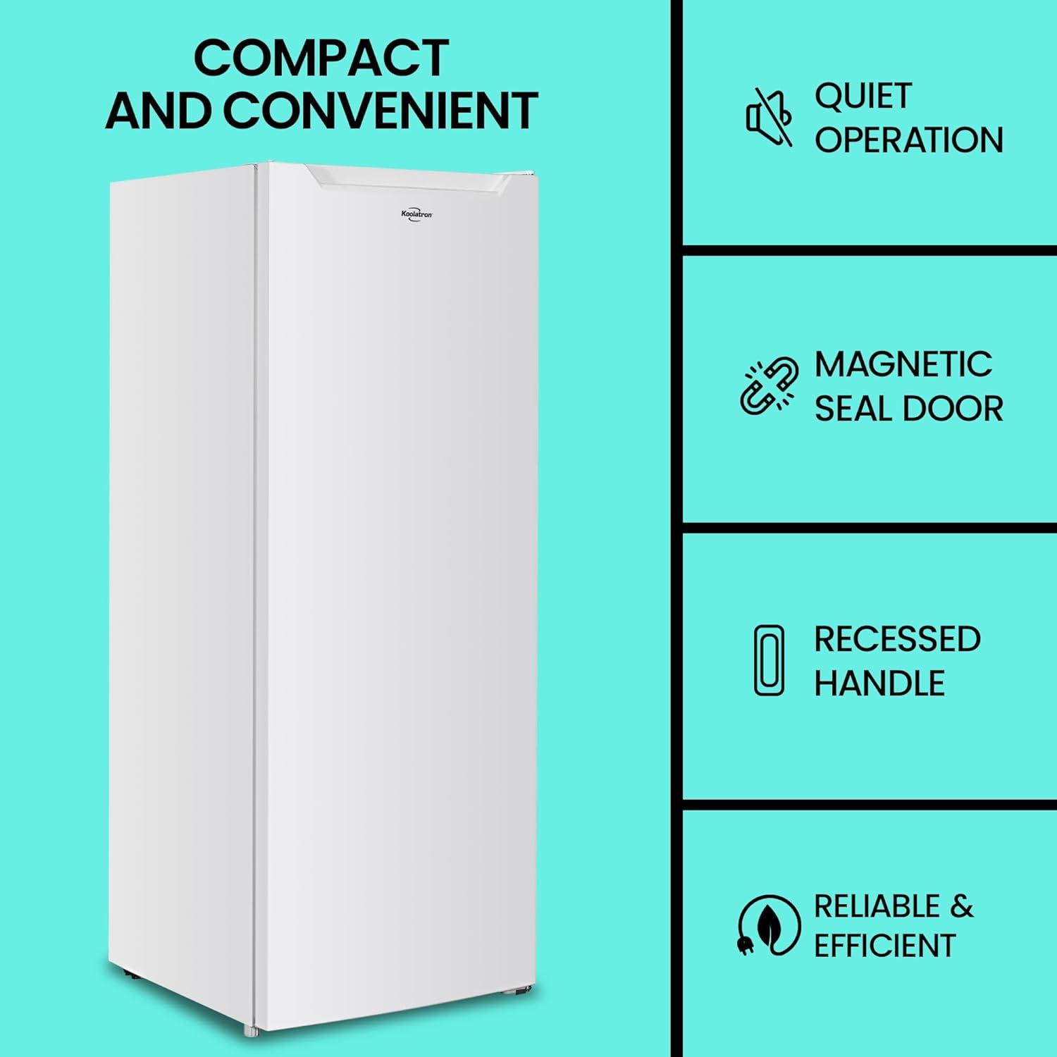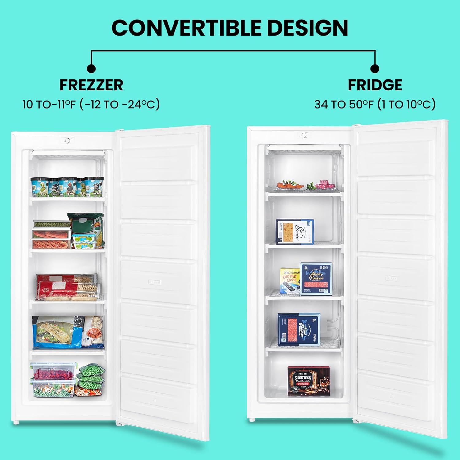 5.9 CU FT CAPACITY: this 150l compact upright freezer offers ample storage for frozen goods, helping reduce food waste & save money. ideal for families or anyone who loves to stock up on frozen treats & meals. with its generous capacity, you can store a variety of items, from bulk purchases to homemade meals, ensuring you always have what you need on hand.