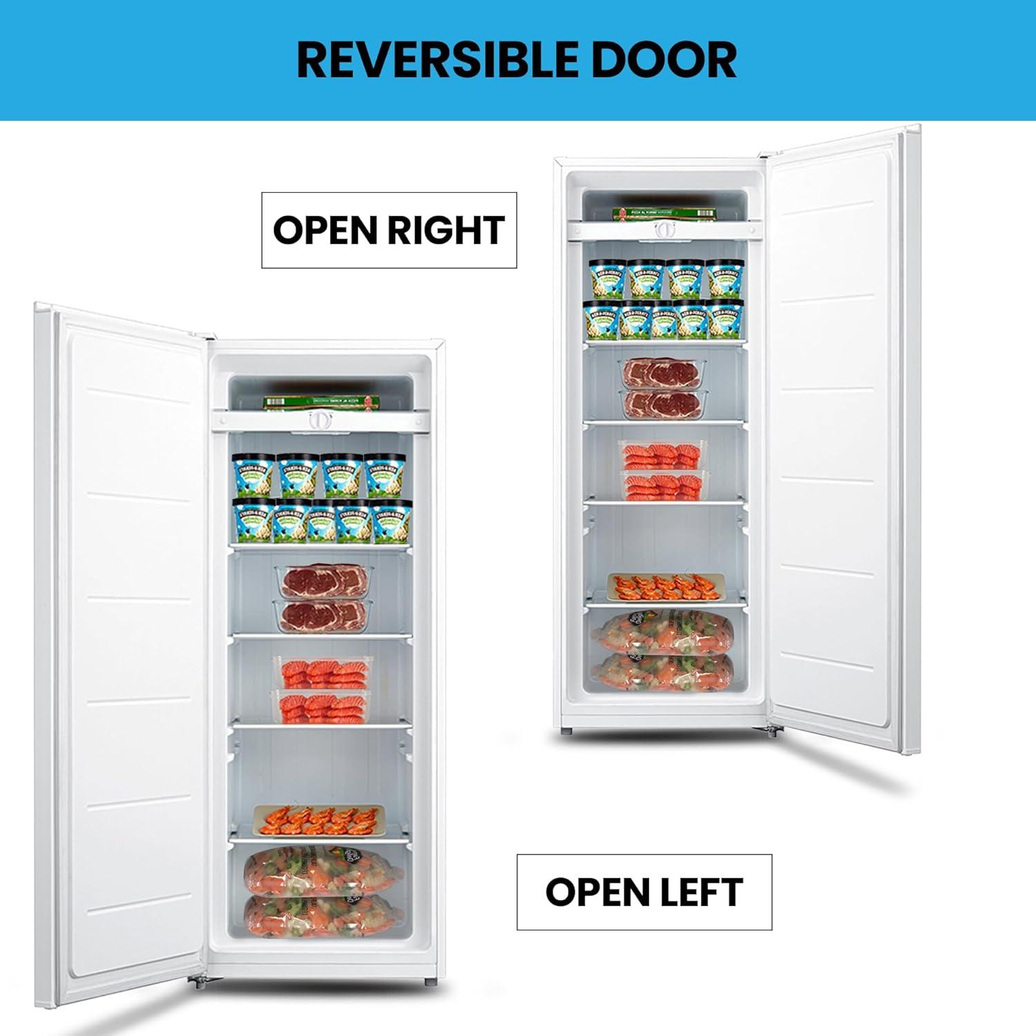 SPACIOUS STORAGE – with a generous 7.0 cubic foot capacity, this stand-up freezer offers ample storage space for your frozen goods. It helps reduce food waste & save money by efficiently preserving your groceries. Generous capacity provides ample room for all your frozen goods, from meals to meats.