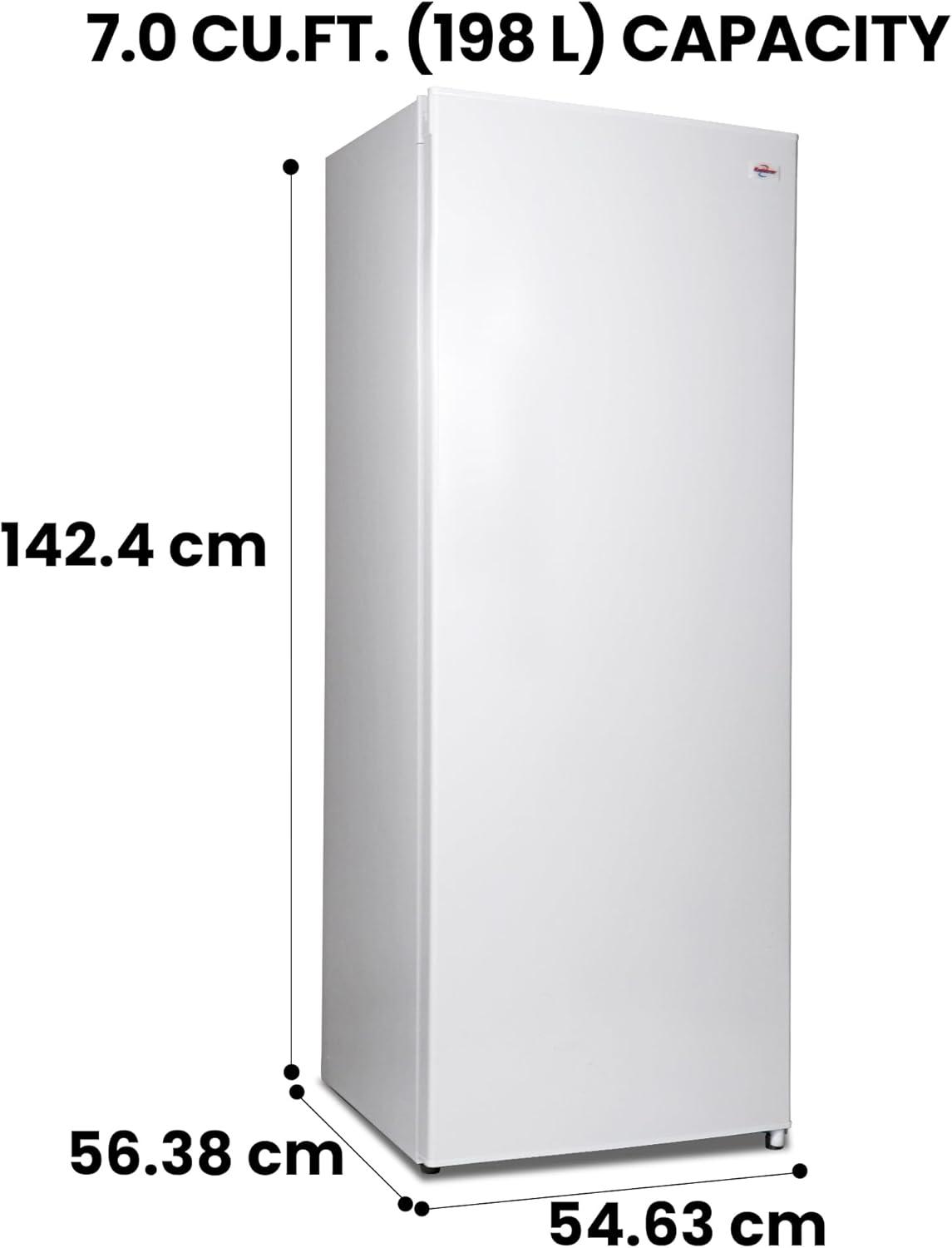 Koolatron 7.0 Cubic Feet Capacity White Upright freezer - 4 fixed grid shelves, Garage Ready, Meat Storage, Manual Defrost, Space Saving, Congelador For Home, Apartment, Basement, Dorm, Room
