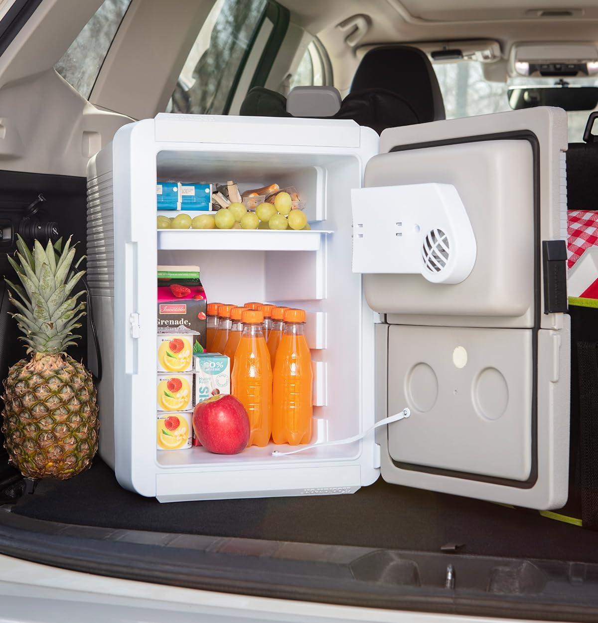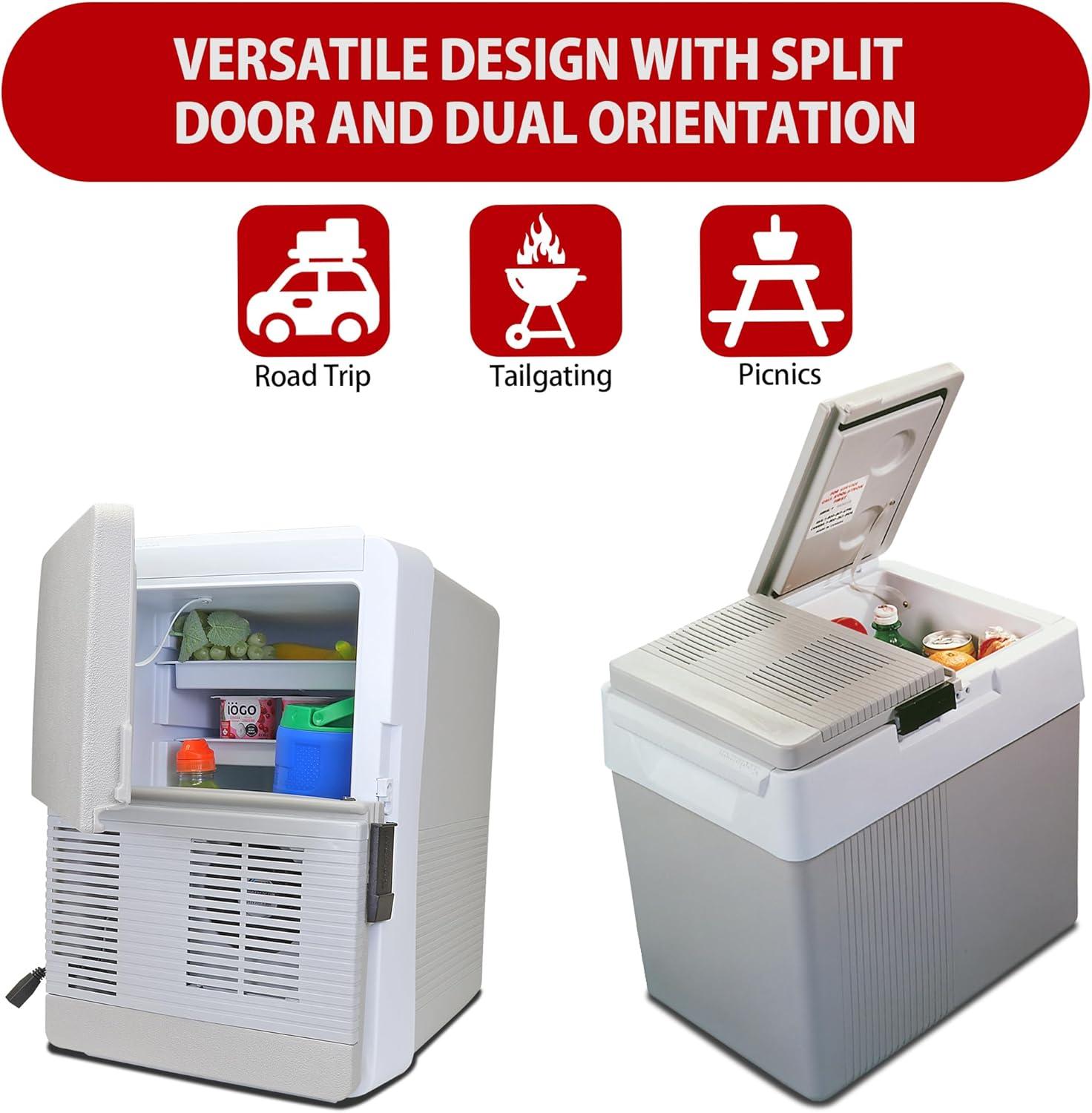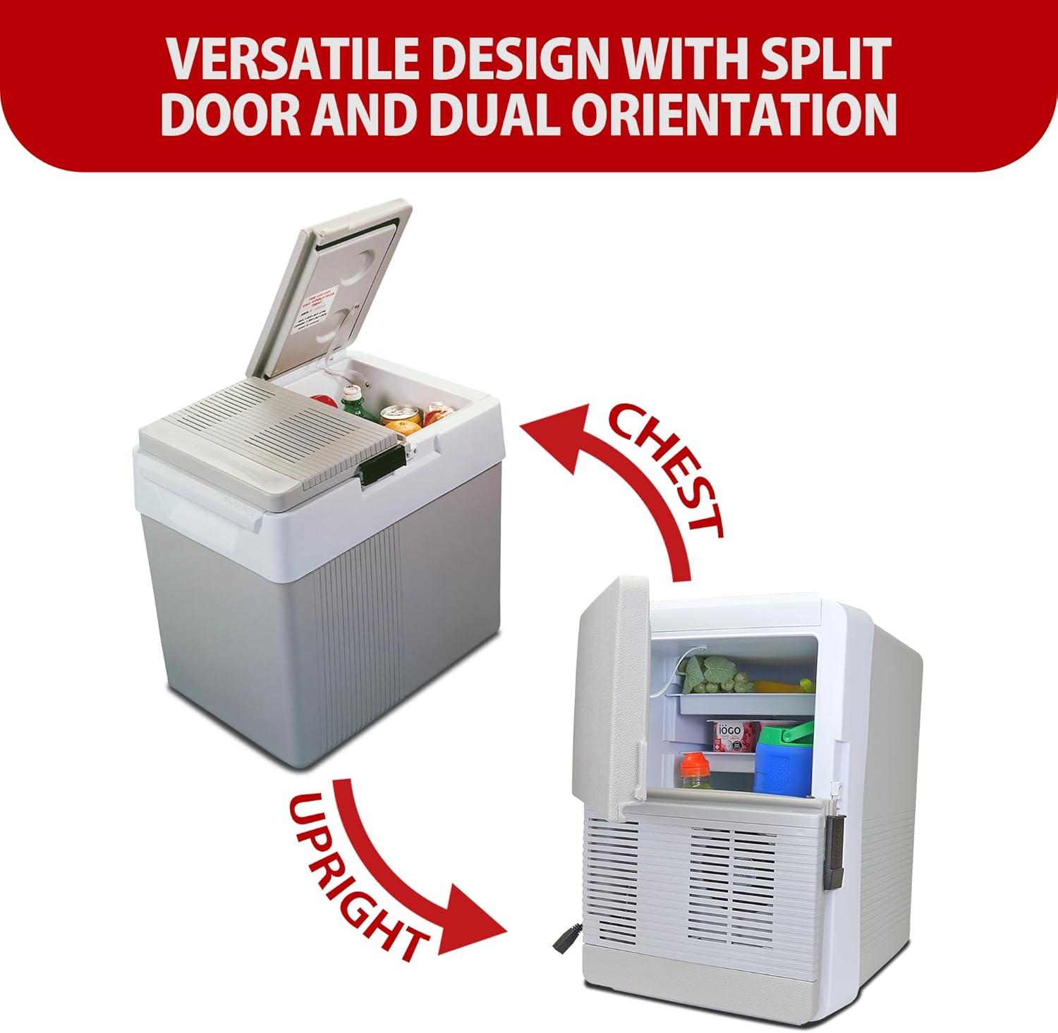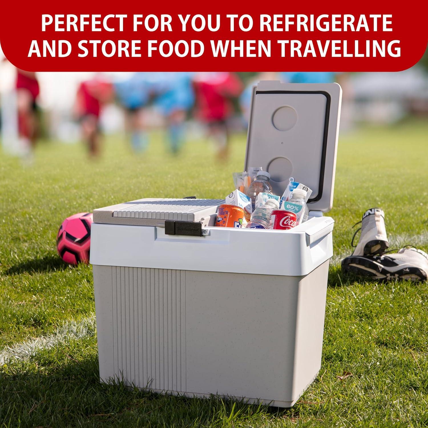 Enjoy convenient access to your snacks and drinks with our 31L (33 qt) cooler! Fill it with your family's favorite food and drinks and plug the power cord into any 12V outlet for reliable iceless cooling. Use it as a classic ice chest or an upright mini fridge. Make your travels more enjoyable with this must-have cooler!