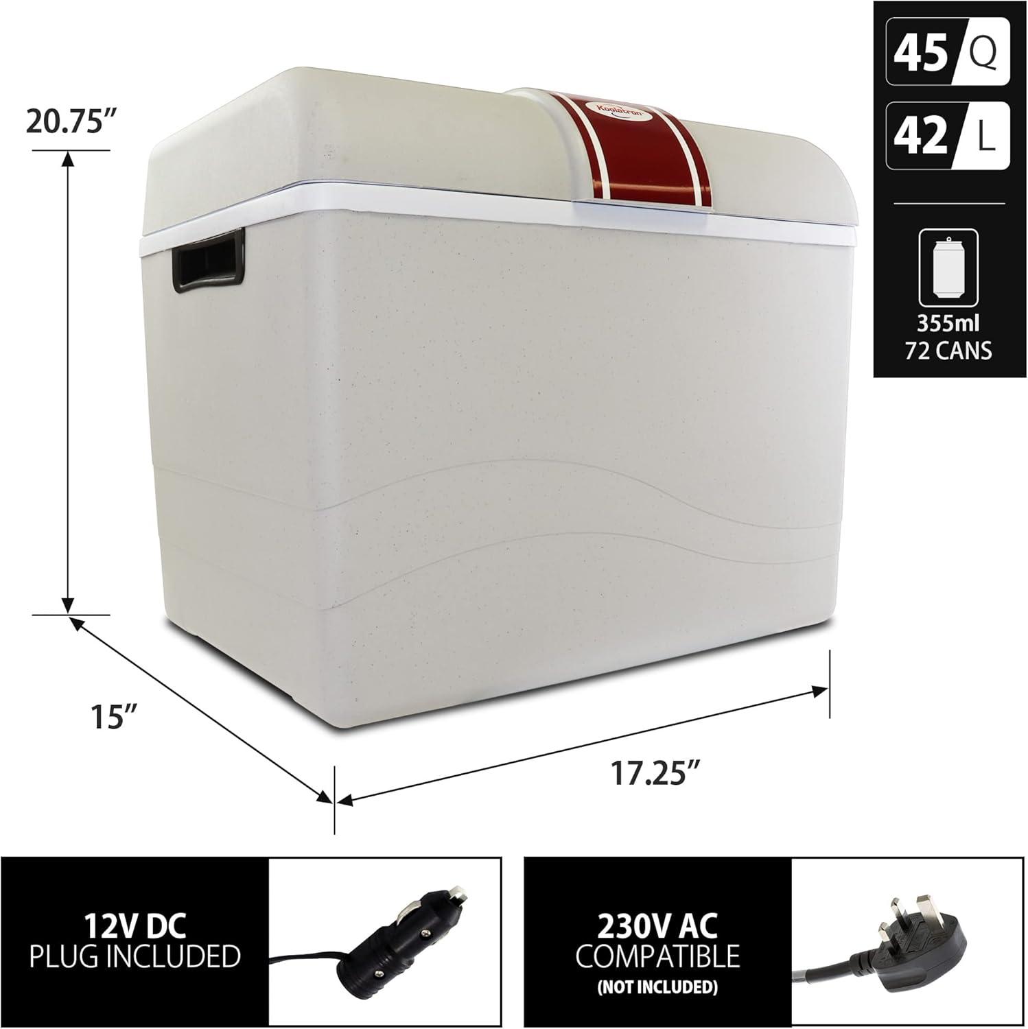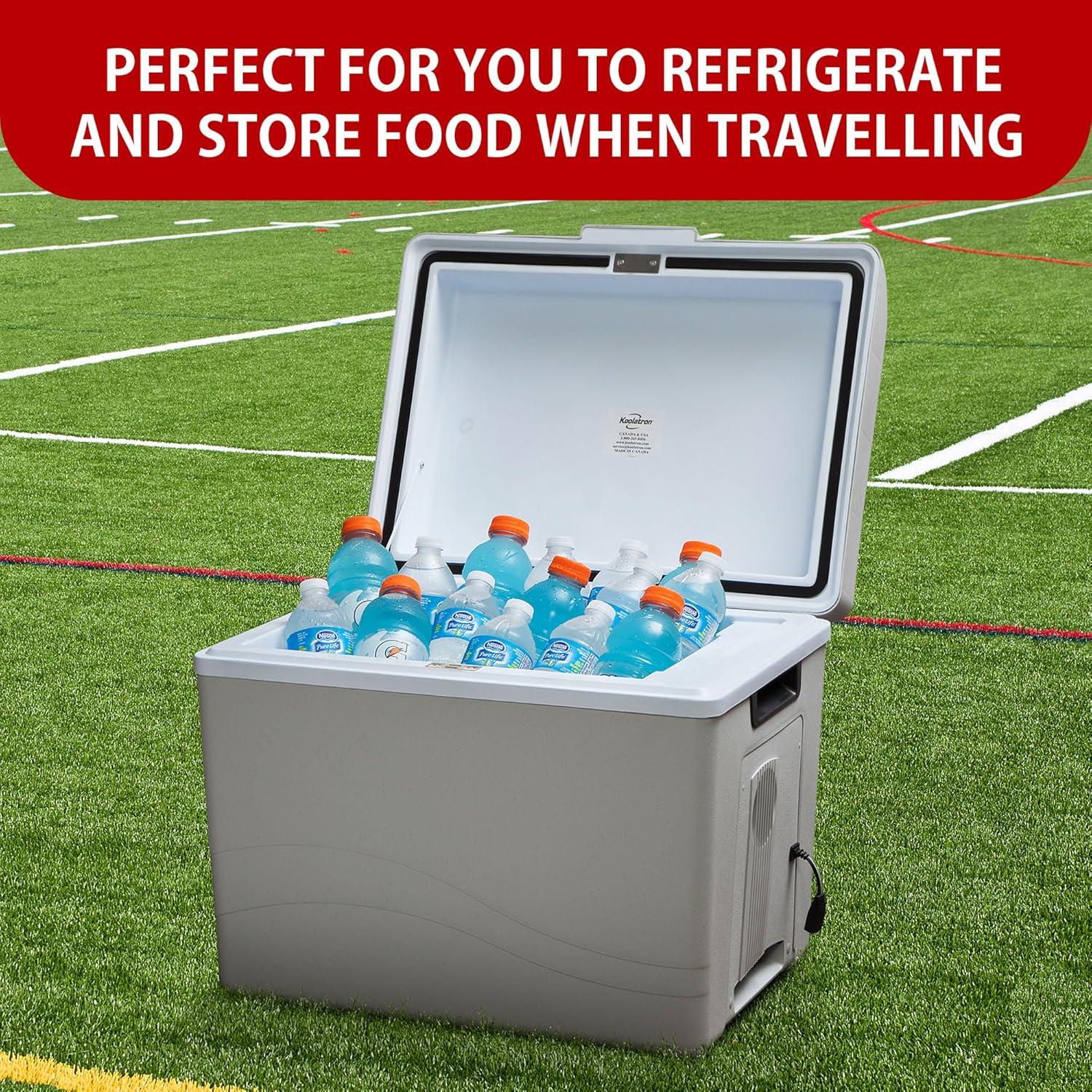 The Koolatron Travel Saver 12-Volt cooler's large 45-quart capacity and unique domed lid make it a great choice for those long road trips. It can keep your groceries cold while you workout at the gym or pick-up the kids. The unique “domed” lid provides maximum space for larger bottles. As with most Koolatron's , this model can also be used as warmer. The AC adapter, sold separately, will allow you to use the Travel Saver wherever there is standard household outlet. The P95 is ideal for long trips, big families and tailgate parties.