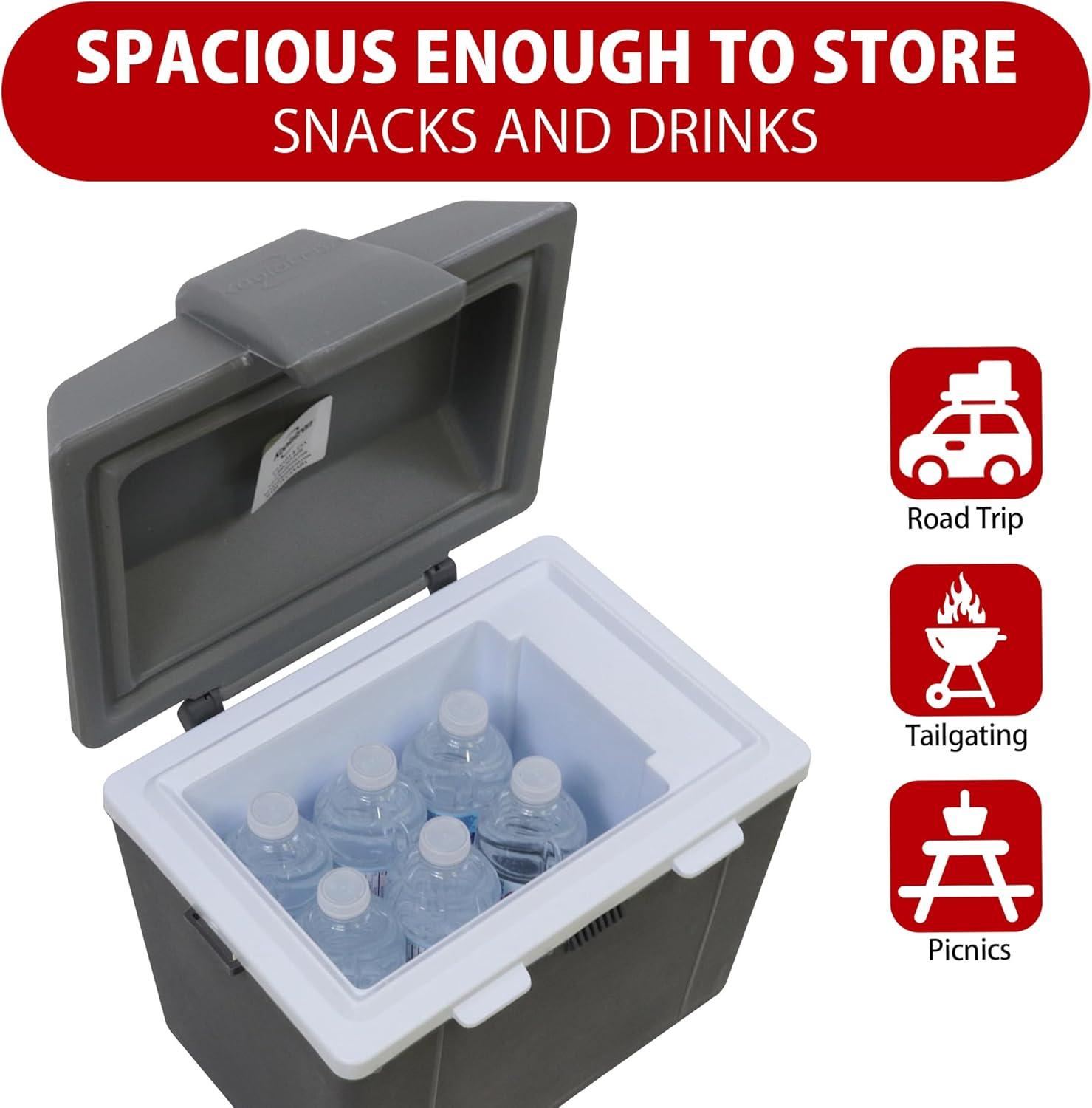 9 L (9.8 QT) CAPACITY: Fits 12 standard soft drink cans and has a domed lid to accommodate taller items, making it perfect for bringing lunch to work or on trips. Its compact size ensures it fits well in vehicles, so you never have to worry about your lunch again! Koolatron has been manufacturing industry-leading 12V coolers in North America for over 30 years