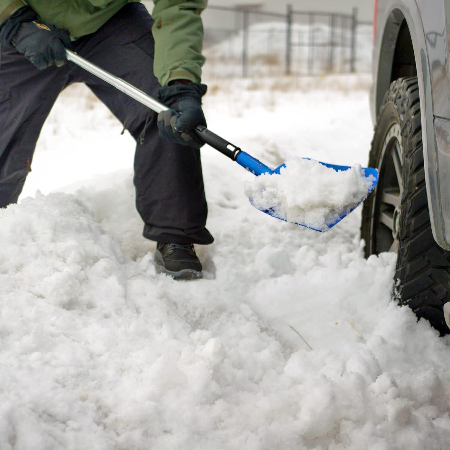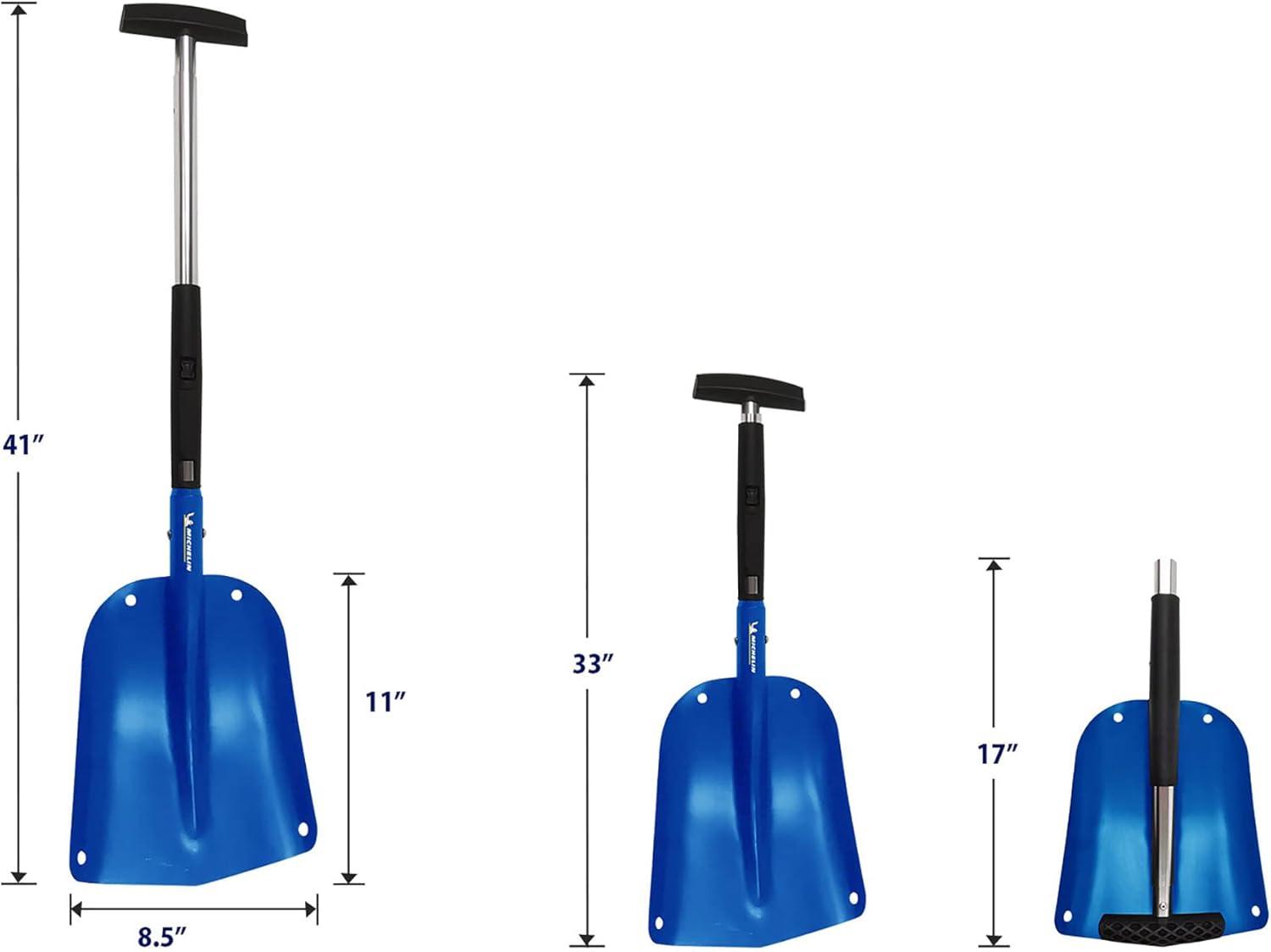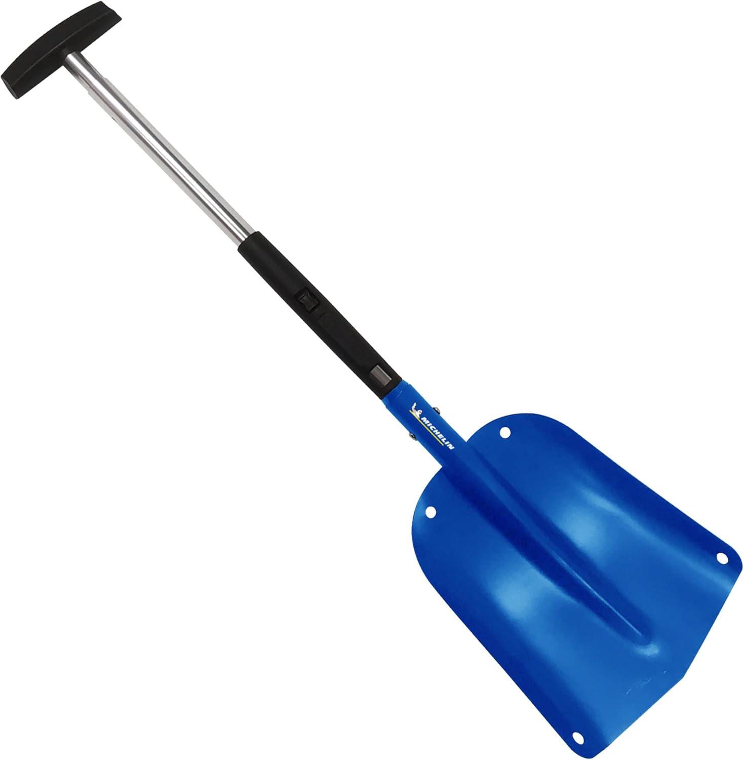Be prepared for winter emergencies: Meet winter storms head on and be prepared for outdoor emergencies with the Michelin-branded ultra-compact utility shovel. This sturdy folding shovel features a heavy-duty scoop and a lightweight aluminum handle that extends to a full 40″ length and securely locks into place so you can shovel without pain. This snow shovel's eye-catching blue scoop is built to last from corrosion-resistant anodized aluminum and the non-slip plastic grips are made of weather-resistant ABS that will not bend or break even in the harshest weather conditions so you can power through heavy snow and stubborn ice.