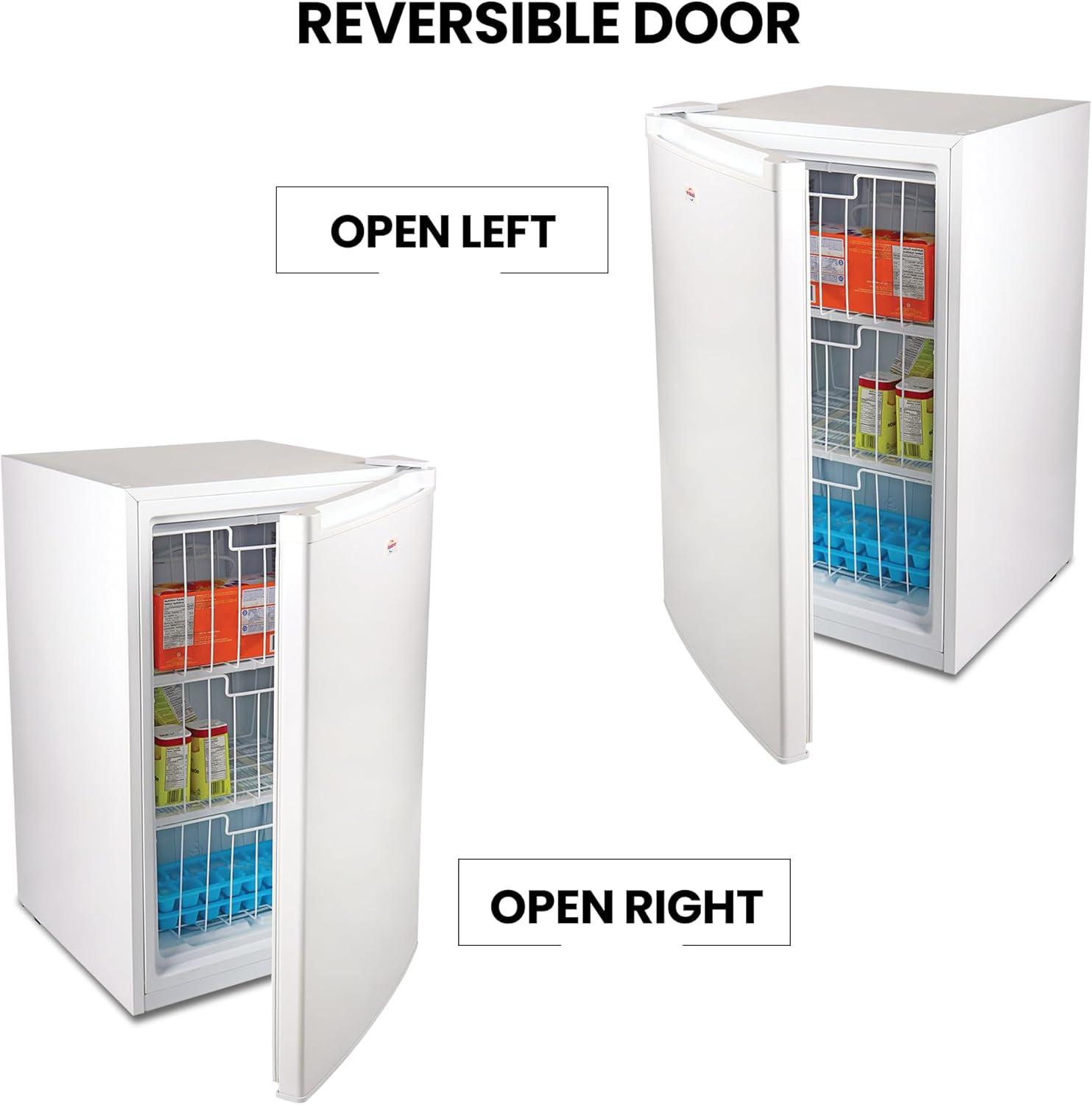 3.1 CU FT (88 L) CAPACITY – this compact freezer with a 3.1 cubic foot (88 liter) capacity provides ample extra storage space for your frozen goods, helping you reduce food waste & save money by buying in bulk & preserving leftovers. it's an excellent solution for those who need additional freezer space without a large footprint.