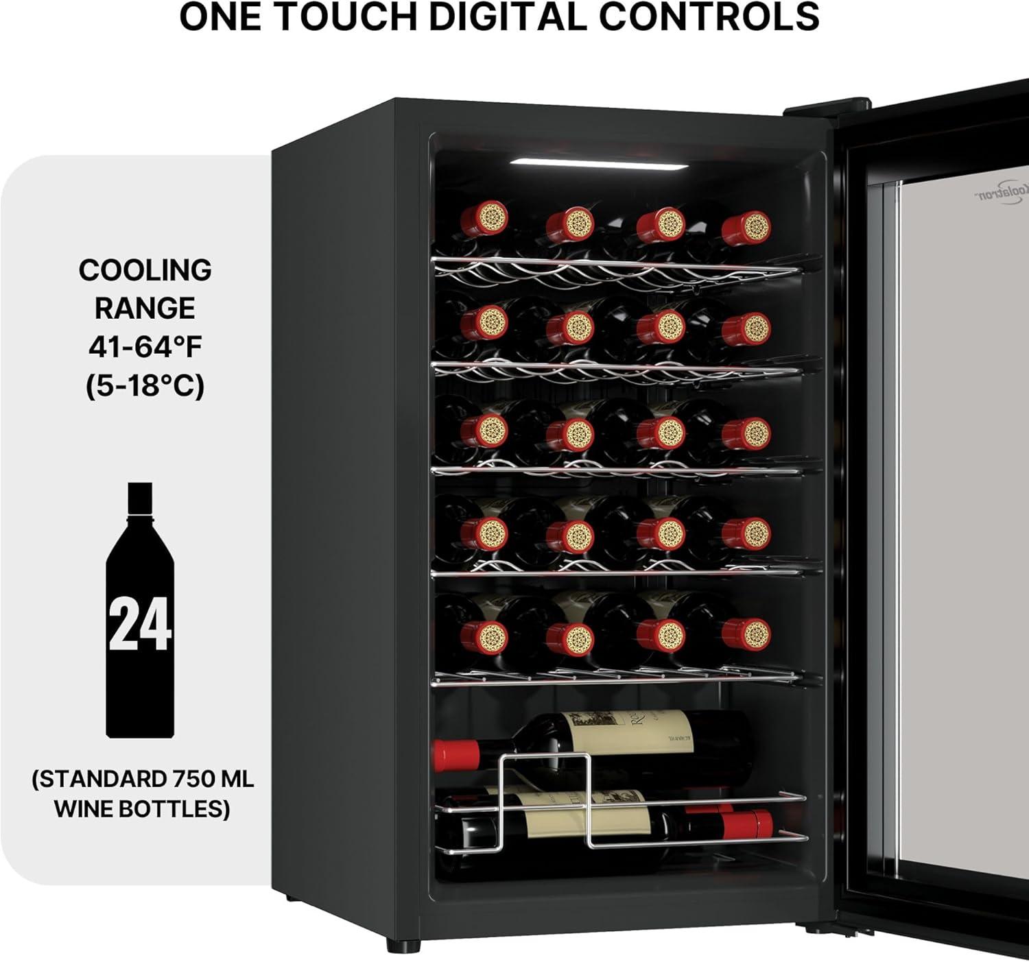 FREESTANDING CONVENIENCE – The Koolatron 2.4 cu. ft (68L) wine cooler's compact freestanding design allows it to be placed anywhere there is a power source. This flexibility means that users can keep their favorite wines close at hand, whether in the kitchen, living room, or any other convenient location. The freestanding nature of the cooler makes it a versatile addition to any home.