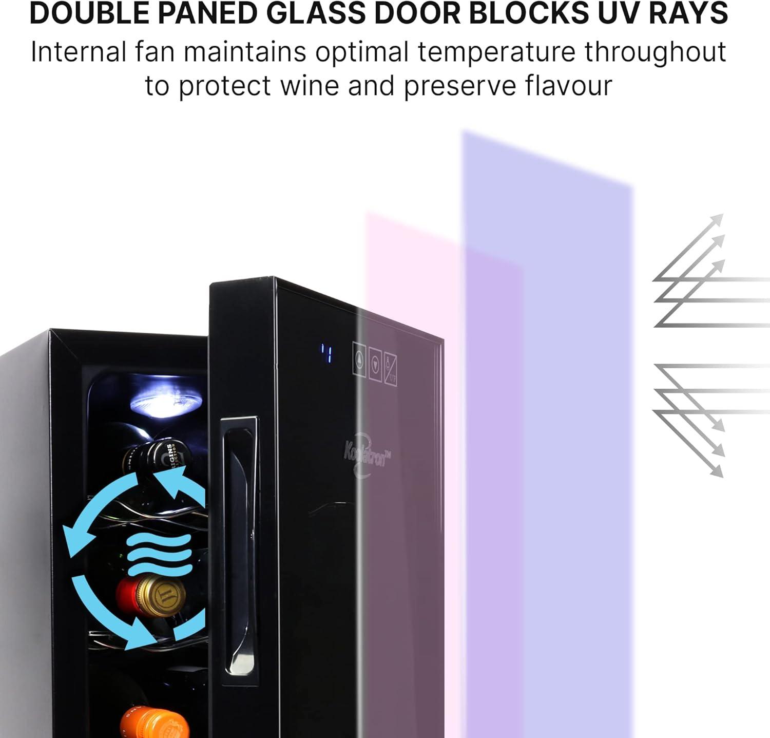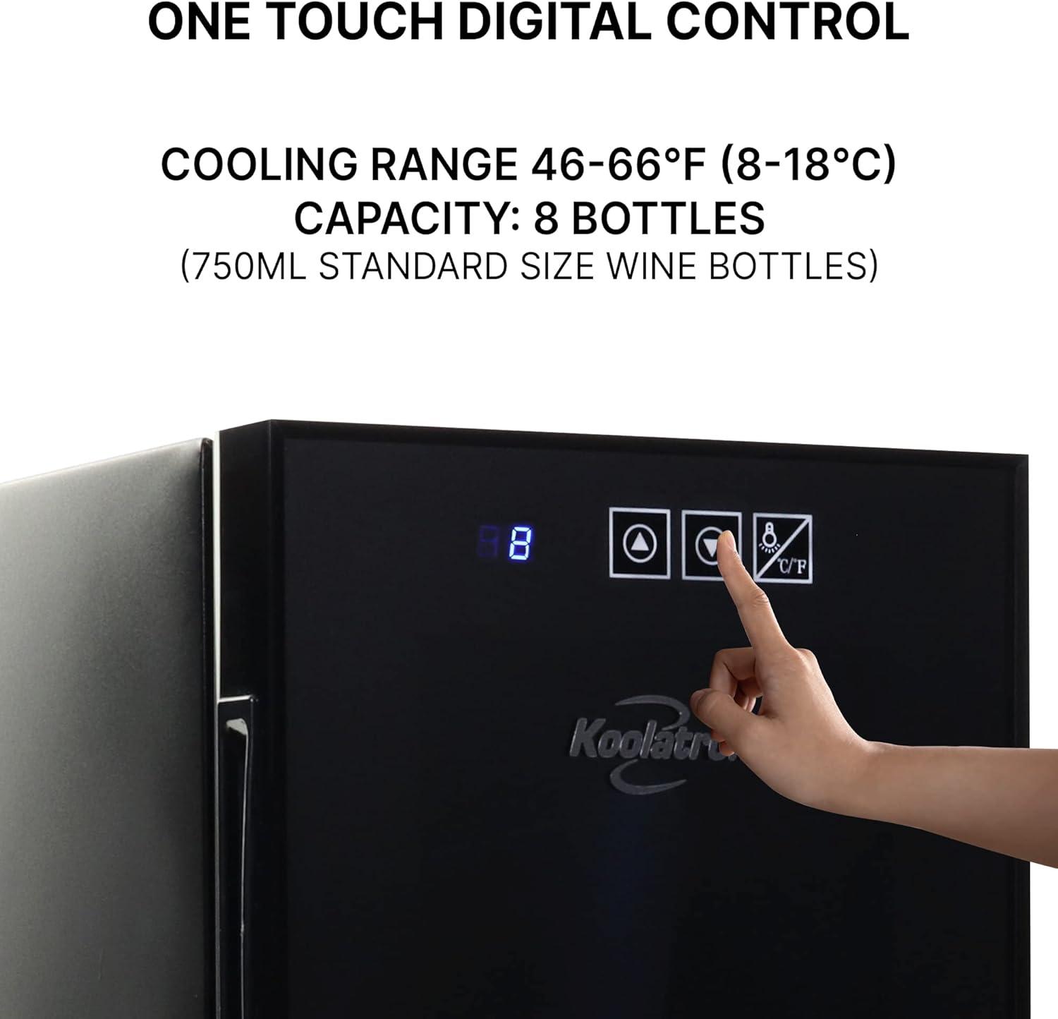 TOUCH SCREEN CONTROLS – The Koolatron 8 Bottle Wine Fridge comes with an easy-to-use digital touch screen that allows you to adjust the temperature, turn the interior light on or off, and make other adjustments without ever opening the door. This feature helps maintain the optimal temperature inside while offering a user-friendly experience that’s perfect for busy kitchens and bars.