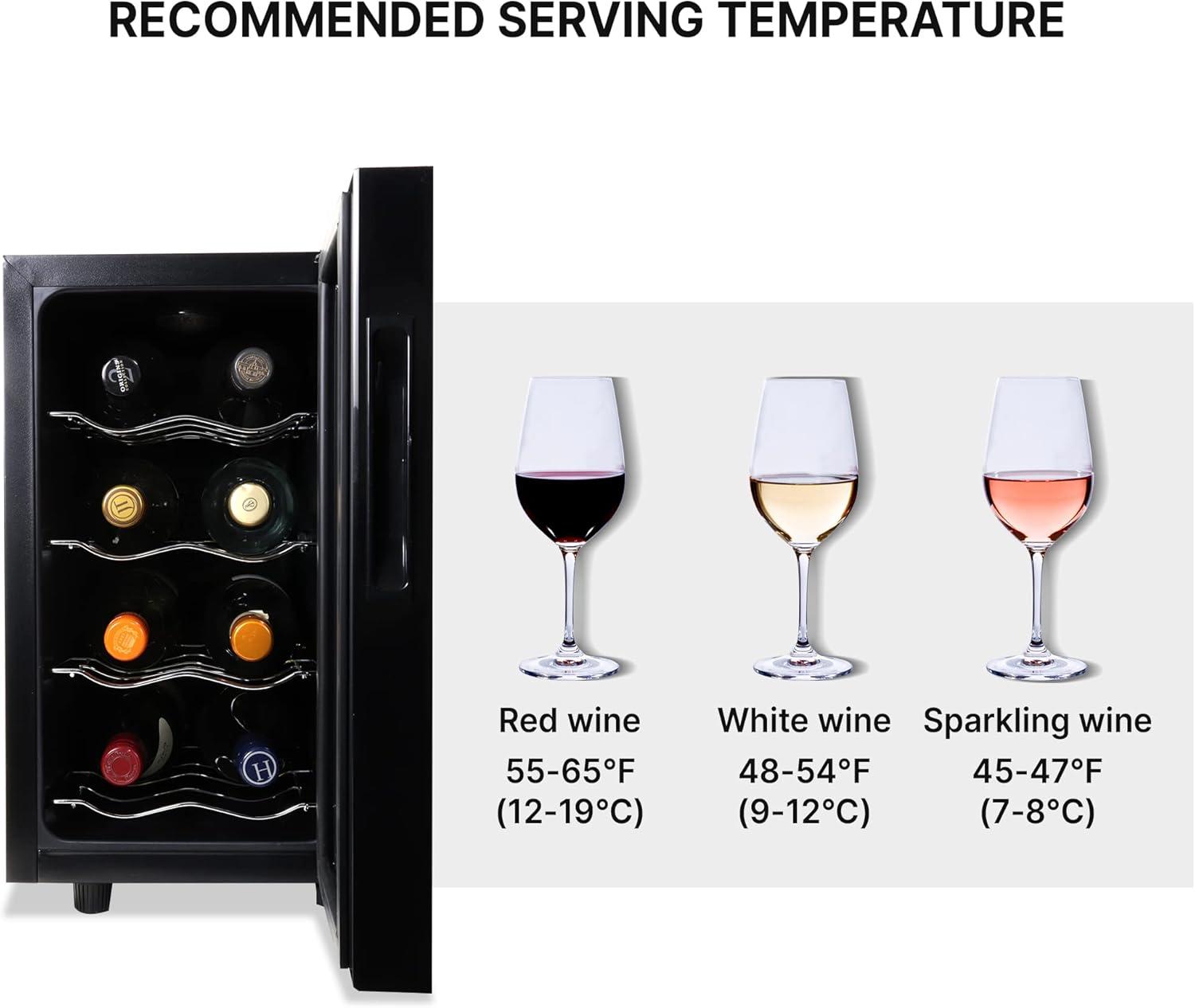 TEMPERATURE CONTROL – The Koolatron 8 Bottle Wine Refrigerator features a versatile temperature control range from 46°F to 66°F (8°C to 18°C), providing the flexibility to store wines at their optimal temperatures. Whether you're storing reds, whites, or other beverages, the temperature can be adjusted precisely to suit your needs, ensuring that every bottle is kept at its best.