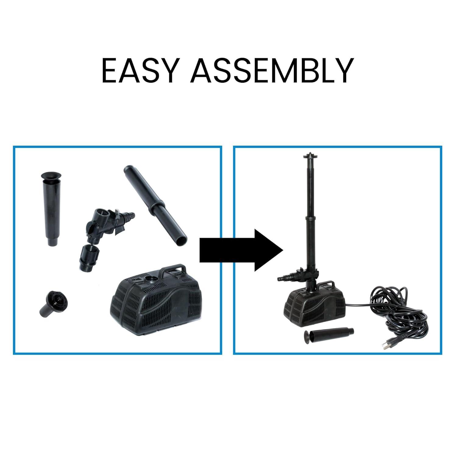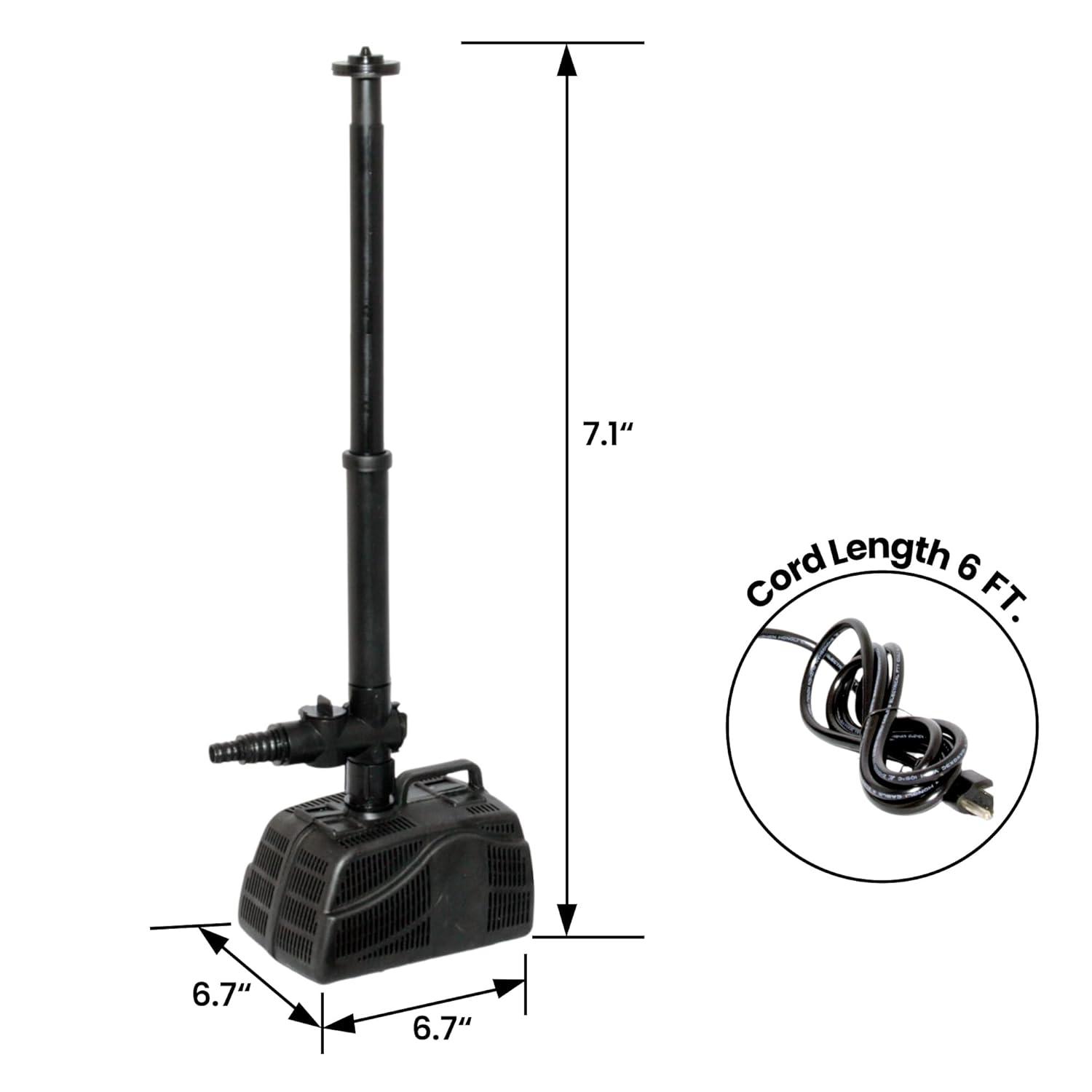 Enhance your backyard oasis with this powerful, low-maintenance pond pump: Water features benefit both you and your garden, providing soothing water sounds and attracting pollinators like songbirds and butterflies to your perfect backyard paradise. This submersible pond pump is ideal for creating a DIY backyard pond or adding an additional fountain or waterfall to your existing pond. With a capacity of 340 gallons per hour, this pump is suitable for ponds up to 680 gal. It features a powerful yet energy-efficient magnet-driven motor that can produce a stream of up to 8.2 ft (2.5 m) and comes with 2 fountain nozzles (water bell and double daisy), diverter, and telescopic riser so you can fully customize your fountain to suit your needs. The filter-free pump is easy to assemble, clean, and maintain, and provides continuous water circulation to oxygenate your pond and maintain a healthy ecosystem without the need for expensive filtration systems.