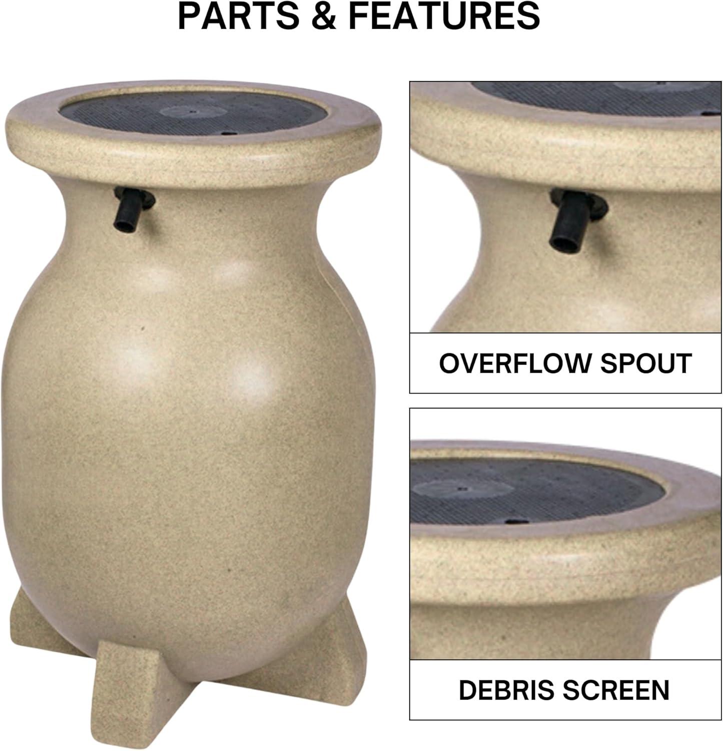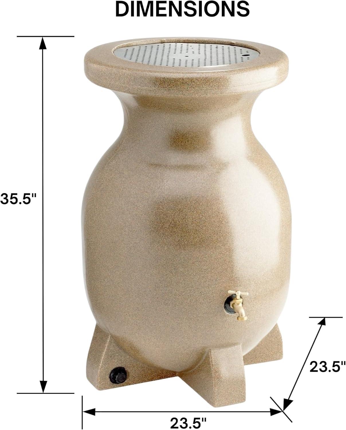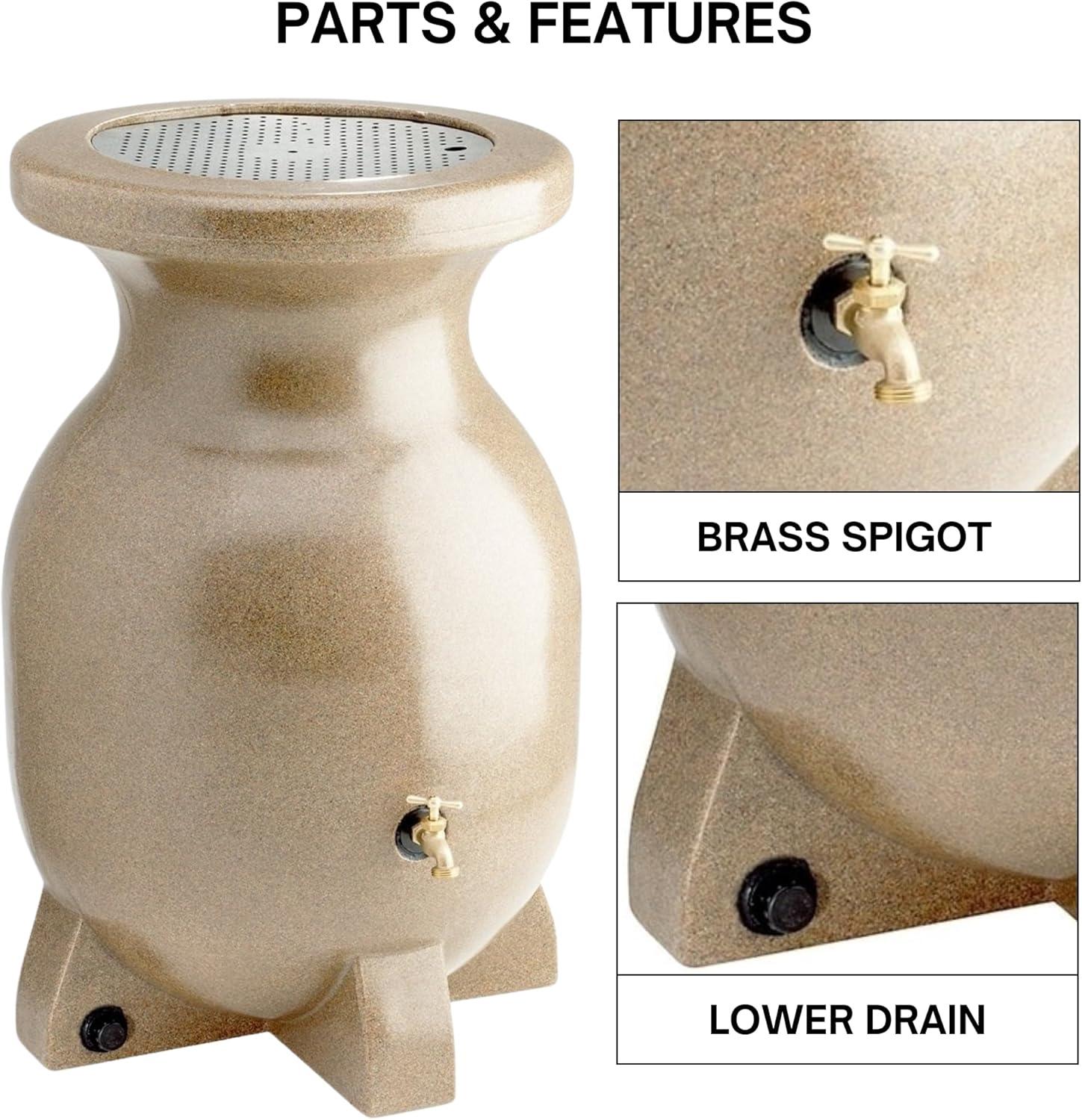 IMITATION STONE LOOK:Unique speckled brown sandstone look and gold-tone brass spigot with standard hose threading make this rain barrel an attractive and functional accent to your garden or backyard