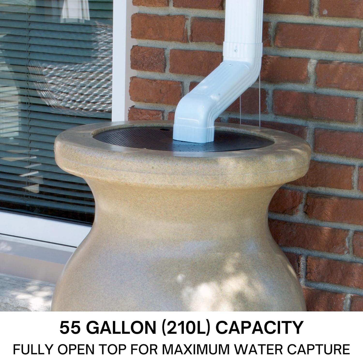 55 GALLON (210L) CAPACITY: Open top with corrosion-proof debris screen and overflow spout collects and stores up to 55 gallons of rainwater that can be used to water your garden and lawn