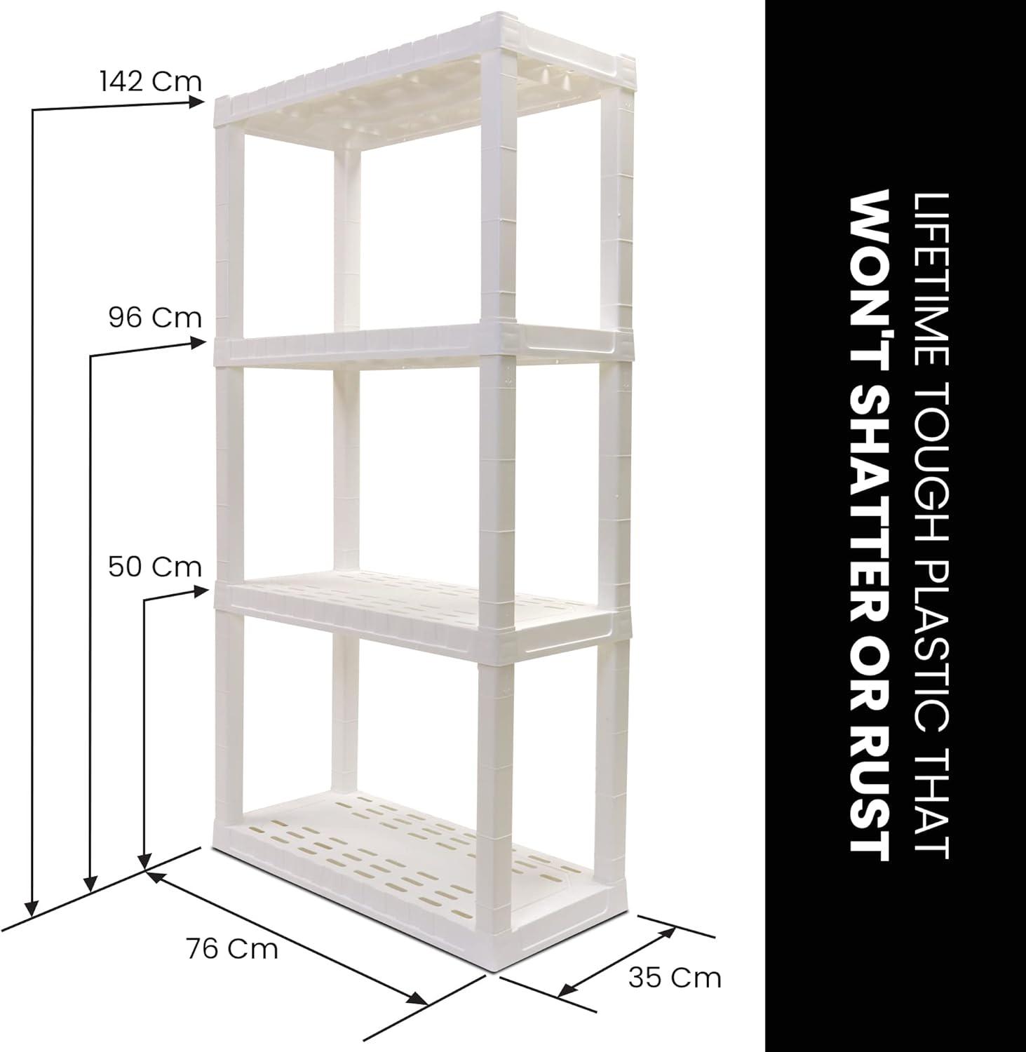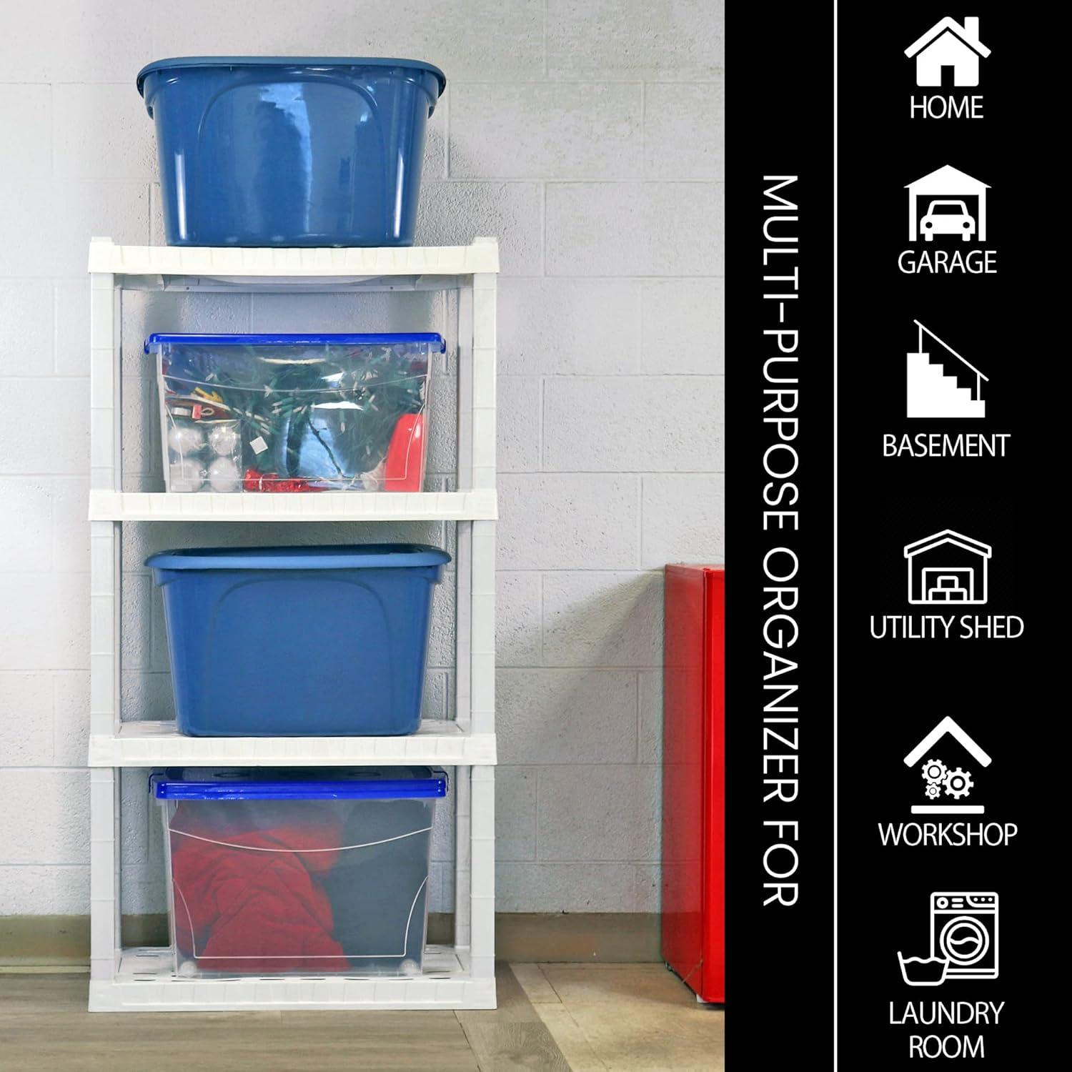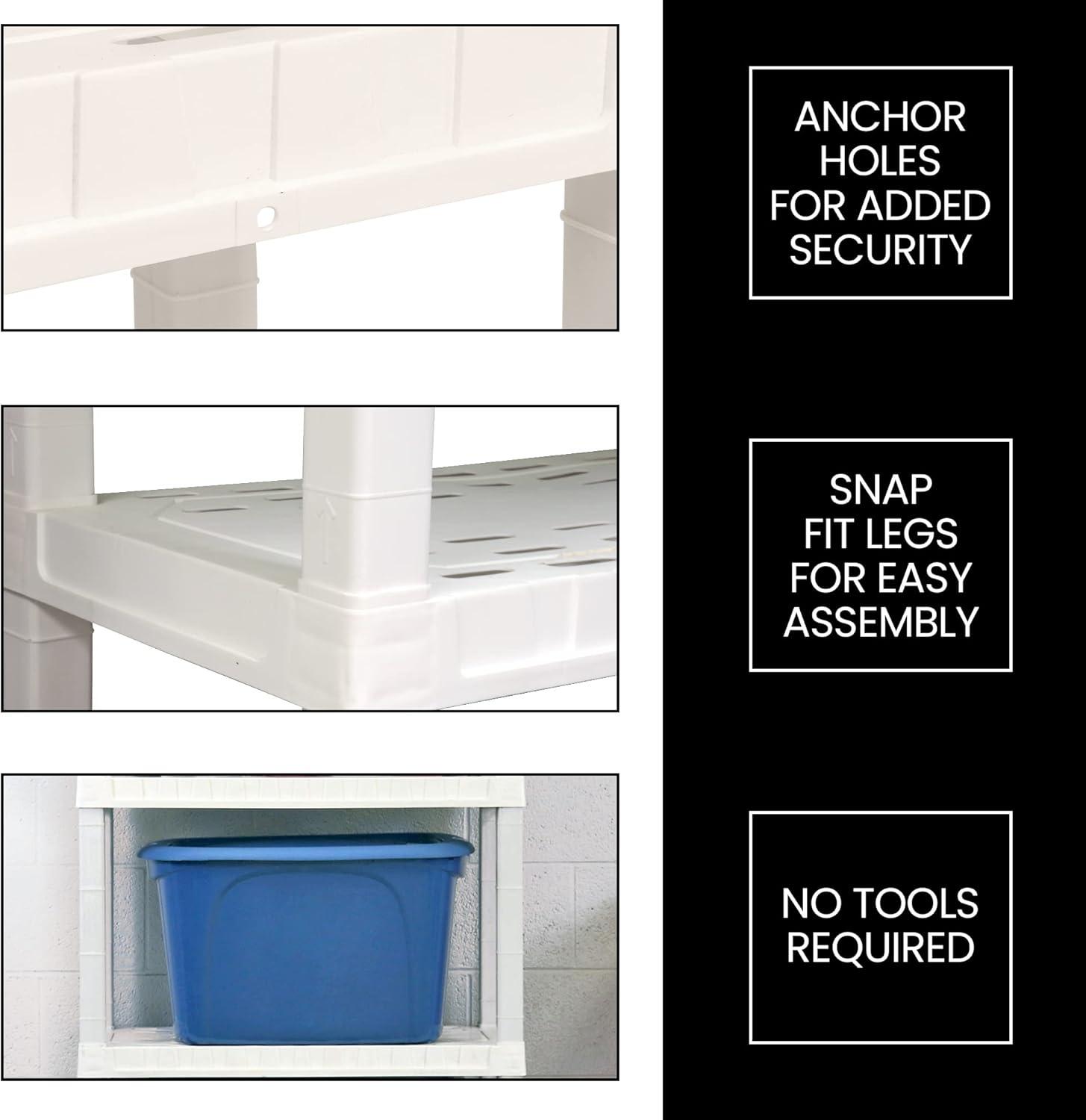 DURABLE RECYCLED PLASTIC CONSTRUCTION : Built to last, our heavy-duty molded plastic resin shelves will not rust, dent, stain, or peel. Ventilation holes let air flow freely around your belongings, keeping them fresh and dry. This durable construction ensures long-lasting use and reliability, making it suitable for various environments, including damp areas, ensuring your items stay protected.