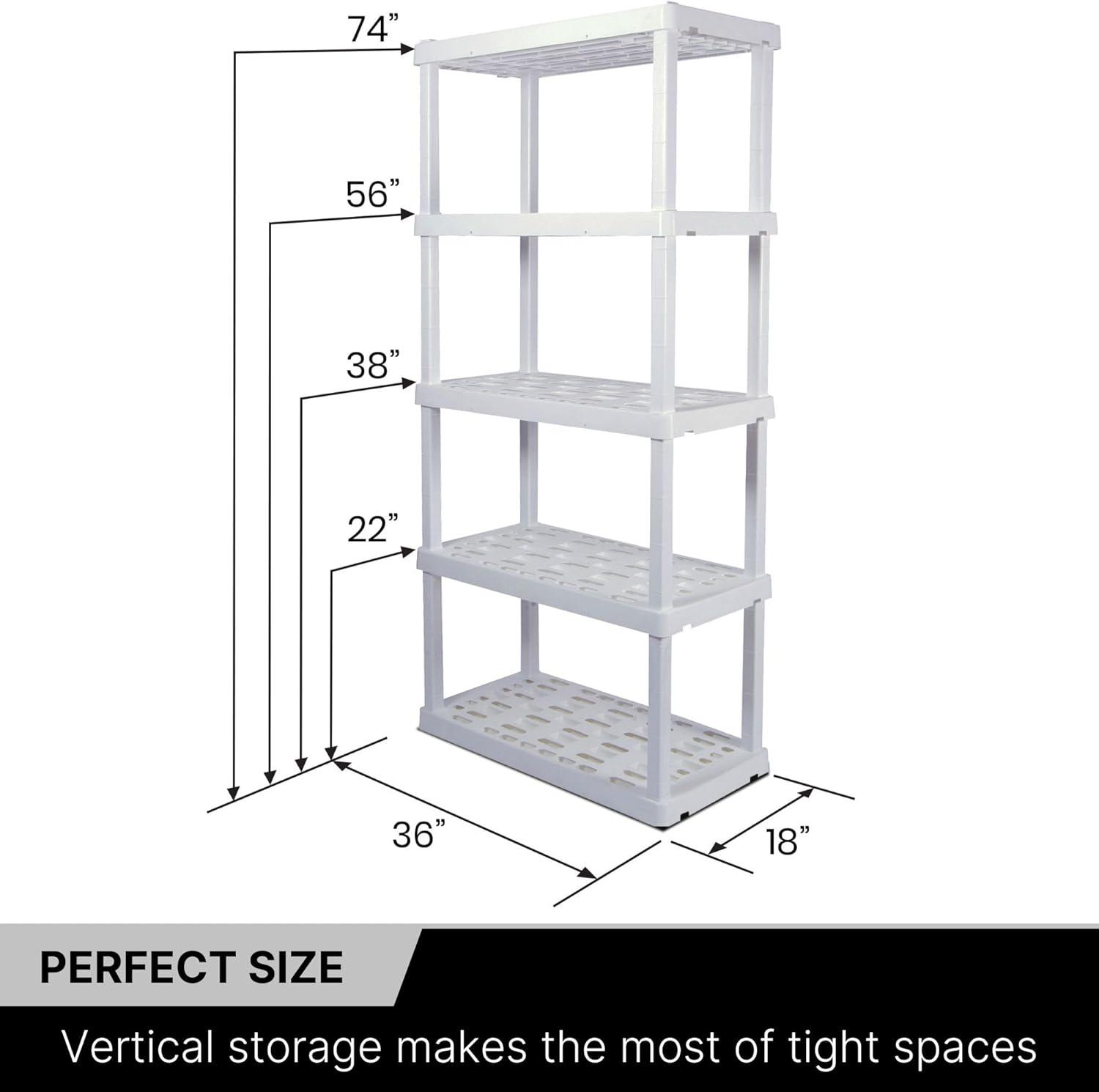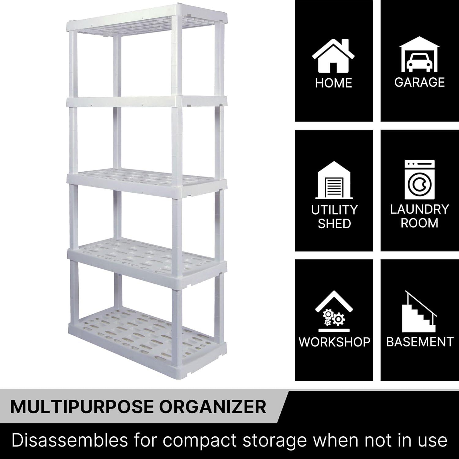 imageOskar 5Tier HeavyDuty Plastic Storage Shelves  ToolFree Interlocking Freestanding Shelving Unit  SpaceSaving Organizer for Garage Kitchen Laundry ampamp Basement  Ventilated Black ShelvesWhite