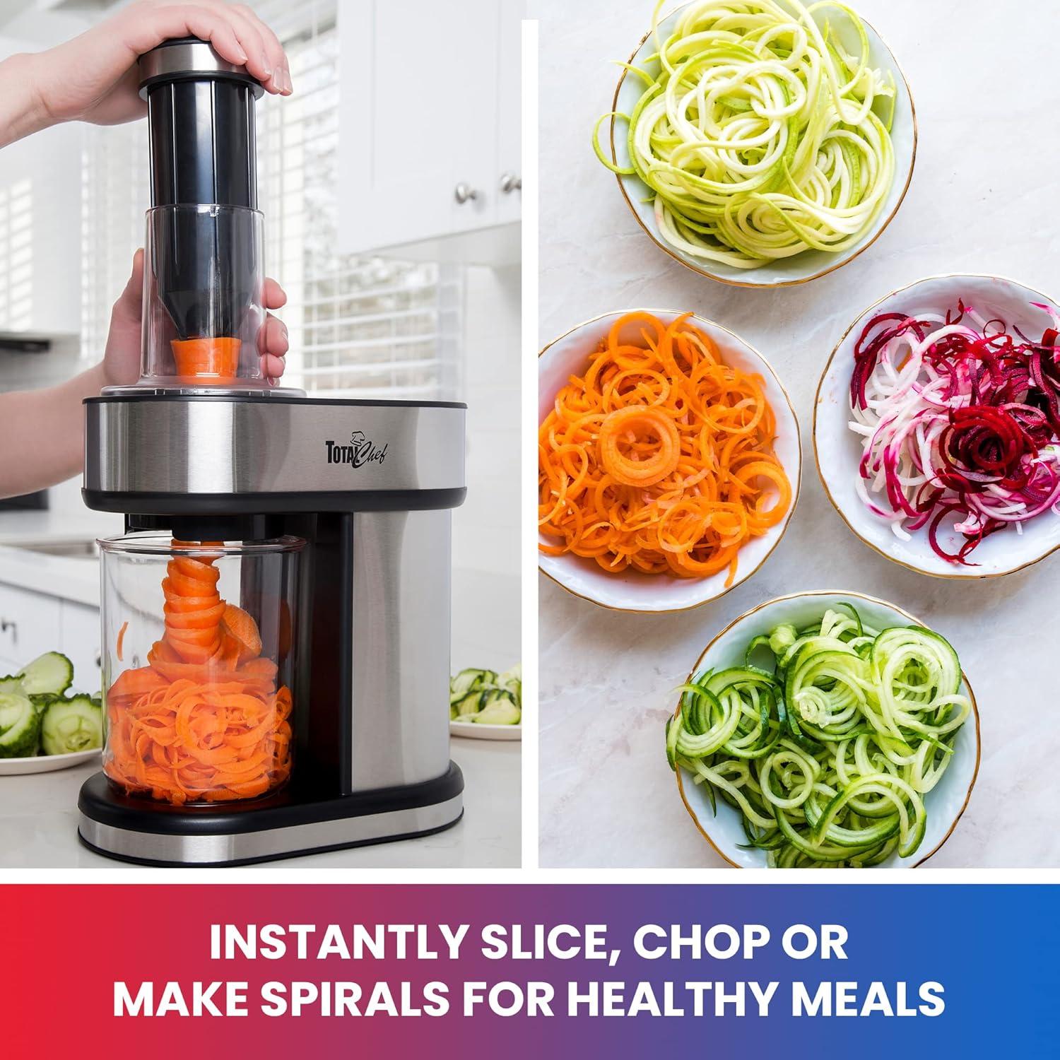 Healthy Low-Carb Cooking Made Easy: Electric spiralizer lets you effortlessly turn zucchini, carrots, beets, squash, and more into delicious salads and gluten-free, keto-friendly “zoodles”