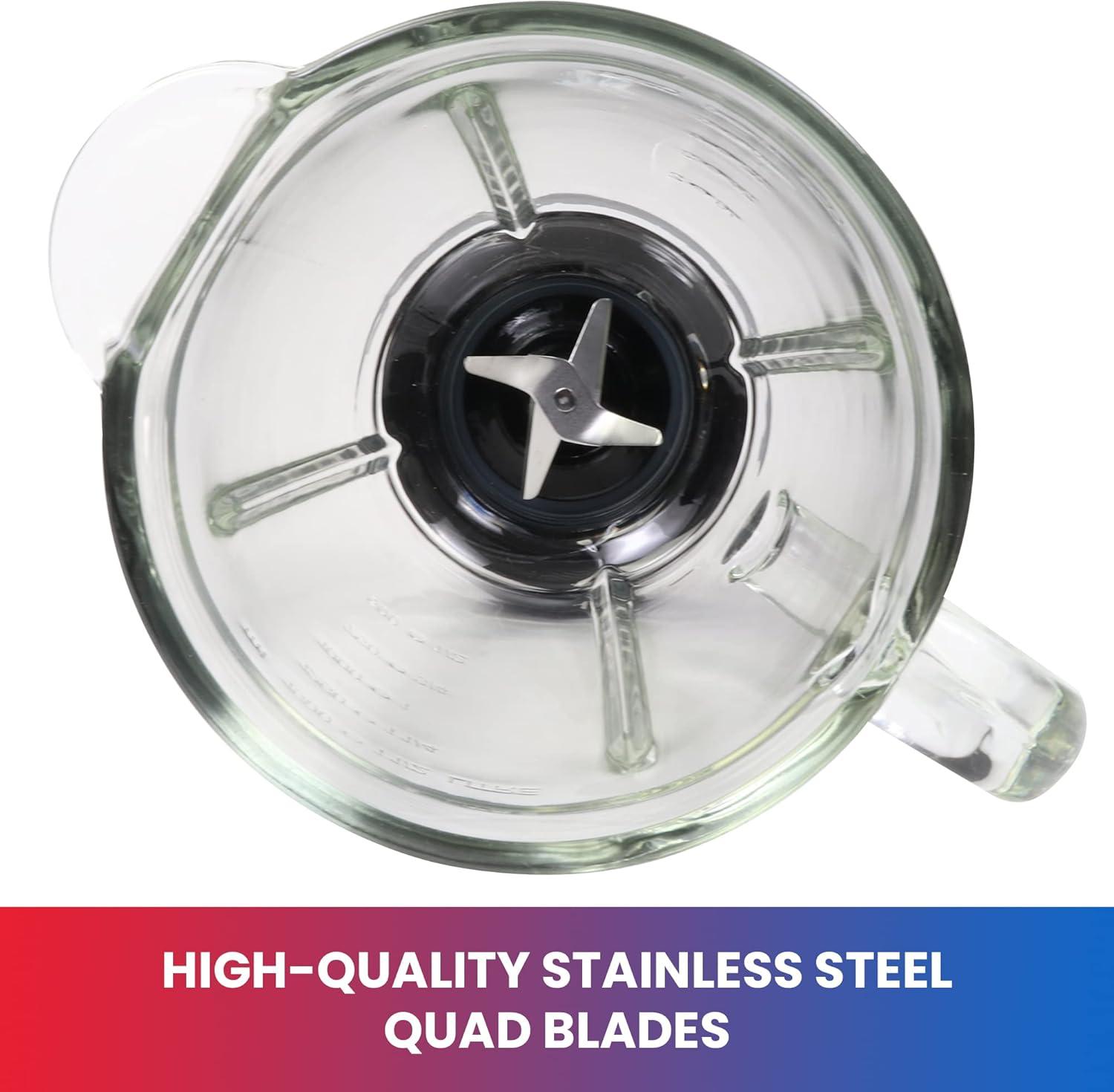 Convenient Design: The large capacity glass pitcher features raised volume markings for accurate measurement and a removable cap that doubles as a 2 oz. Measuring cup. The shatter-resistant glass jar and anti-slip rubber feet provide maximum stability and security during use, ensuring a safe and efficient blending experience.