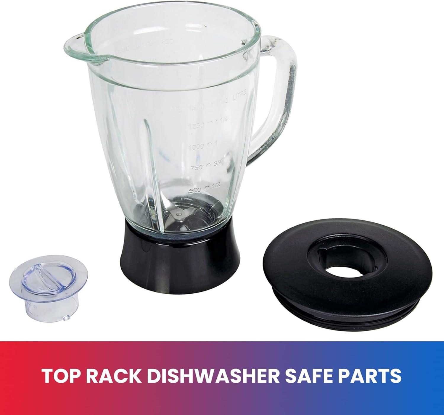 EASY CLEANUP – Dishwasher-safe jar and lid. auto-clean function for quick maintenance. CONVENIENT FEATURES – 64 oz pitcher with volume markings and a vent cap that doubles as a 2 oz measuring cup.